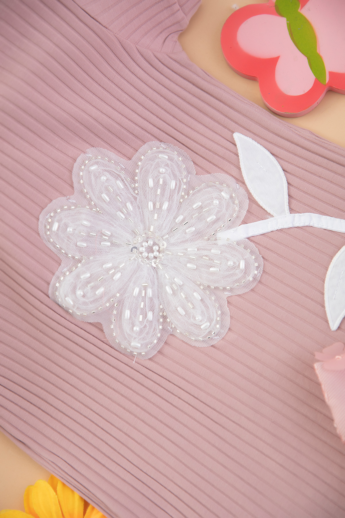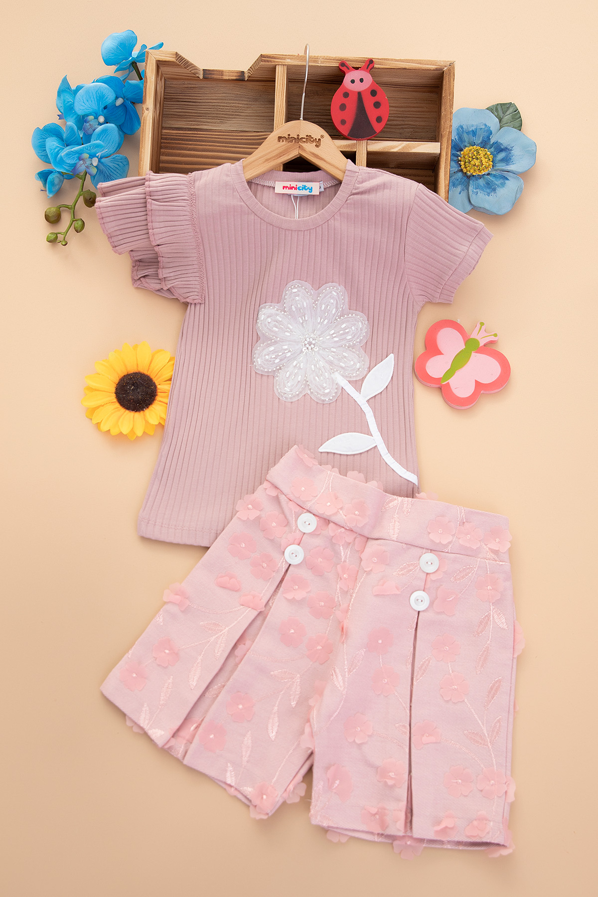 Kız Çocuk Papatya İşli Kot Şort Takım - 208 (7-10 Yaş)