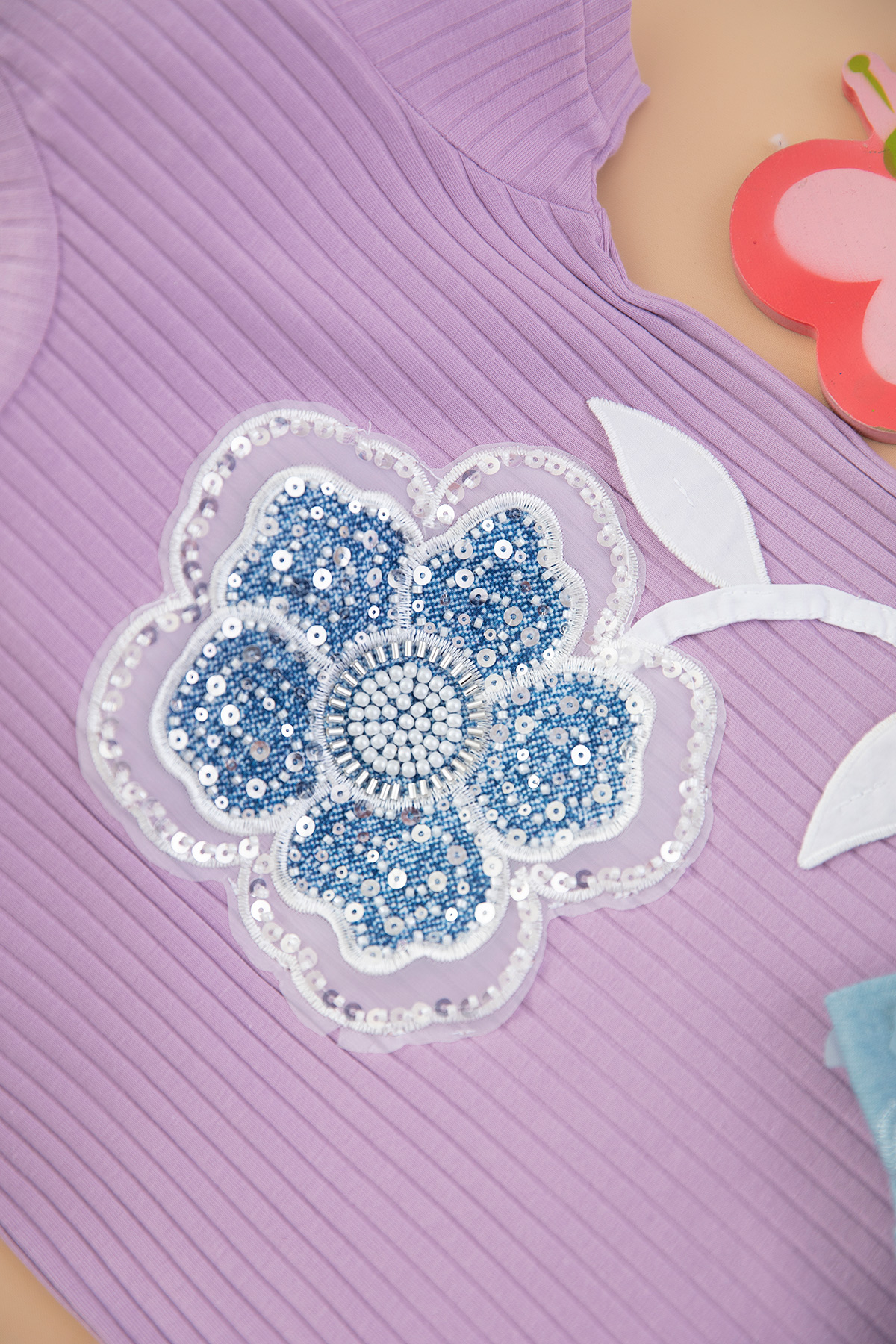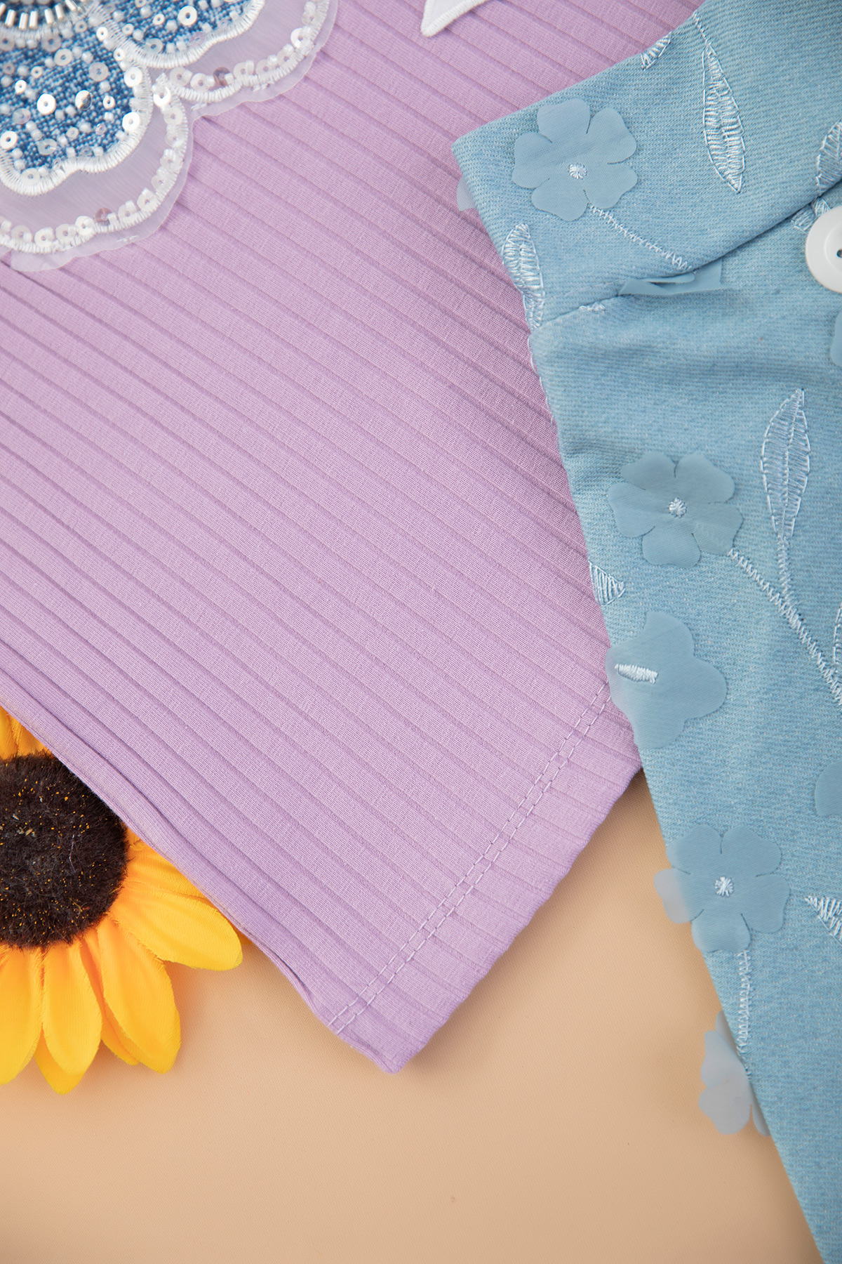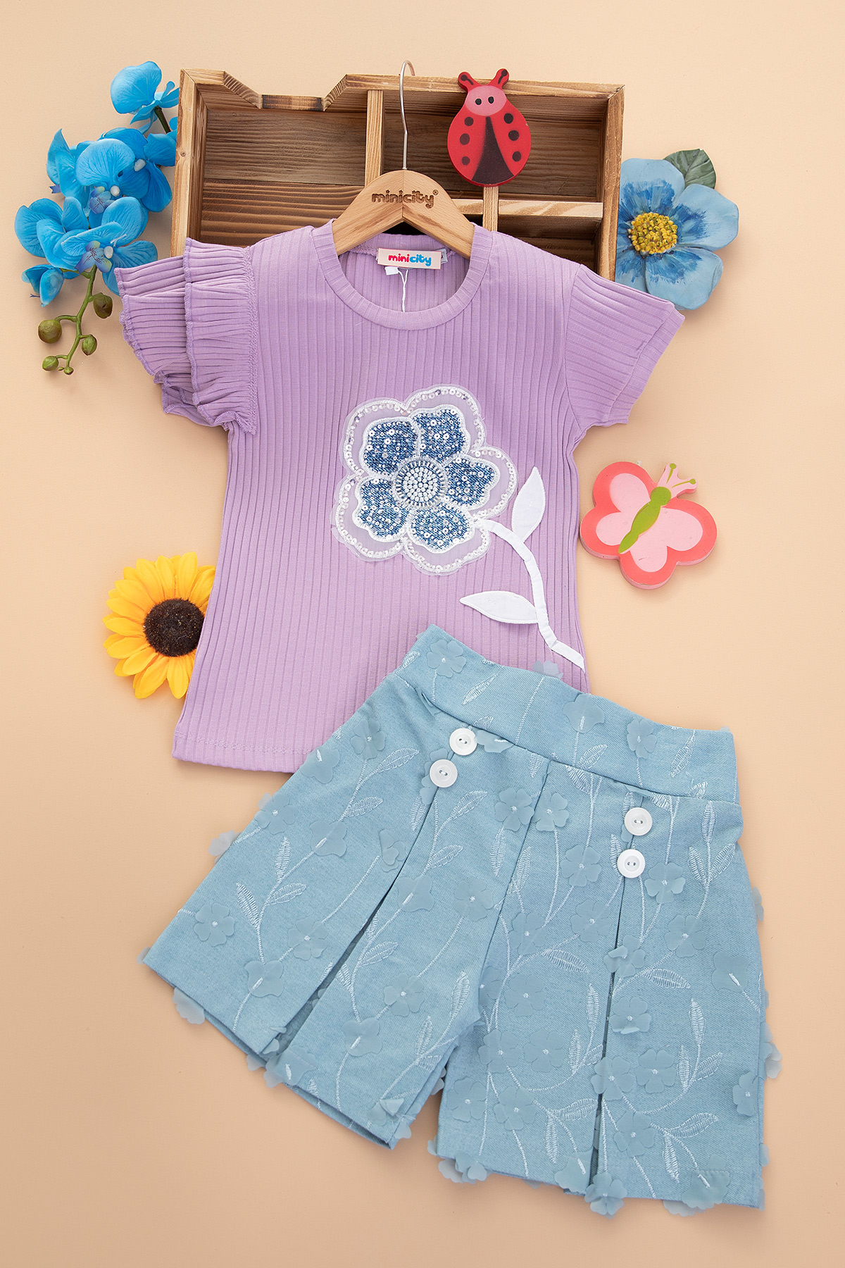 Kız Çocuk Papatya İşli Kot Şort Takım - 208 (7-10 Yaş)