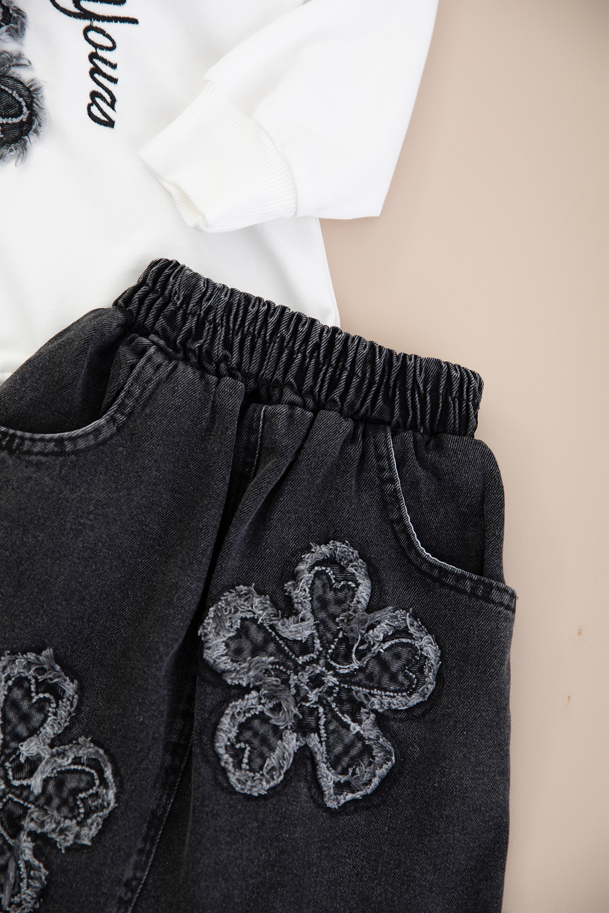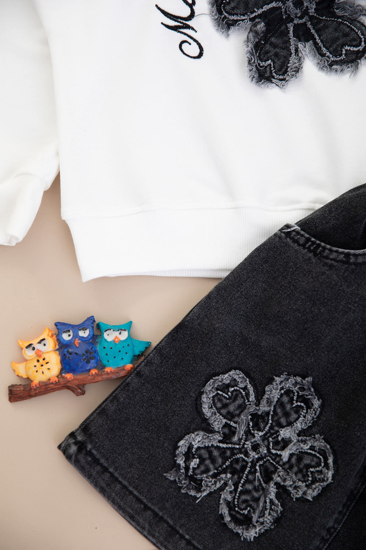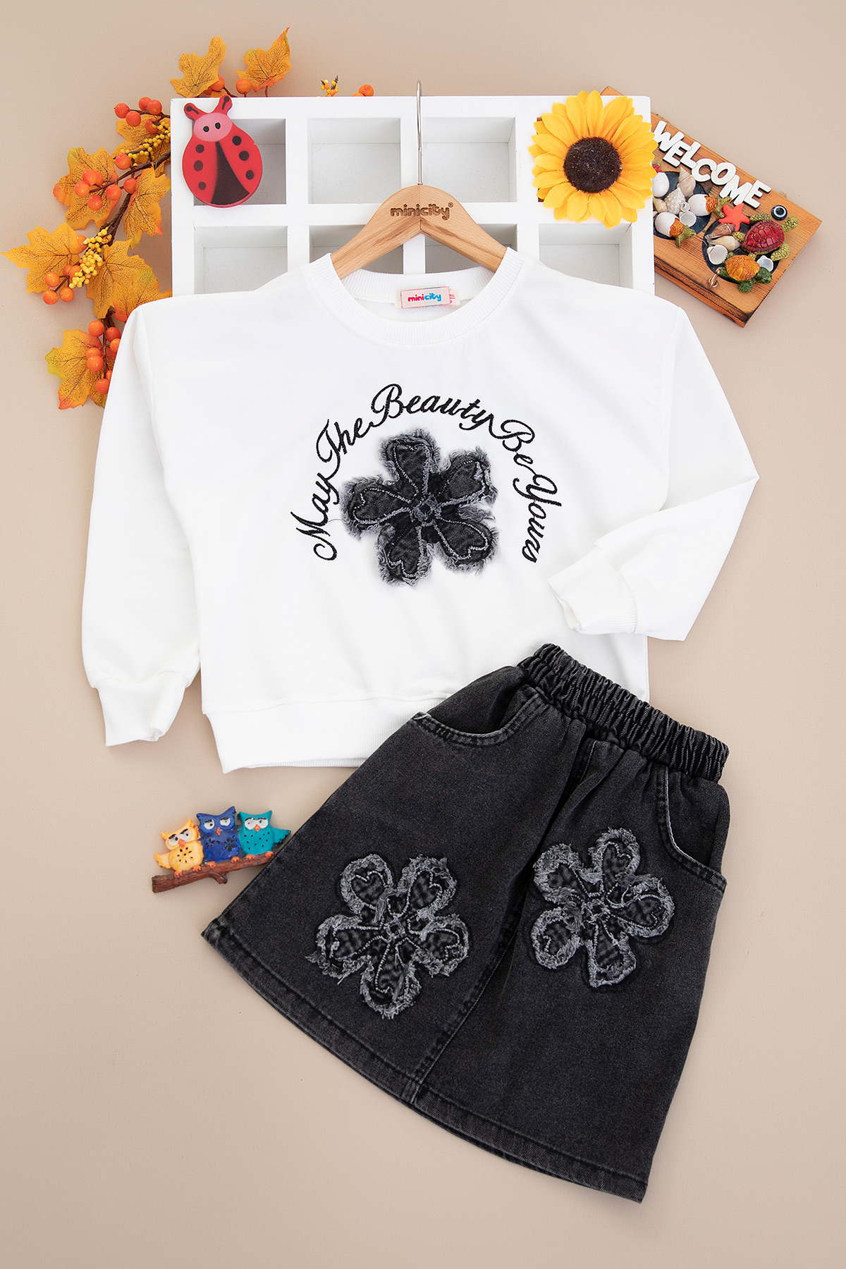 Kız Çocuk Papatya Kot Etekli Takım - (6-10 Yaş)