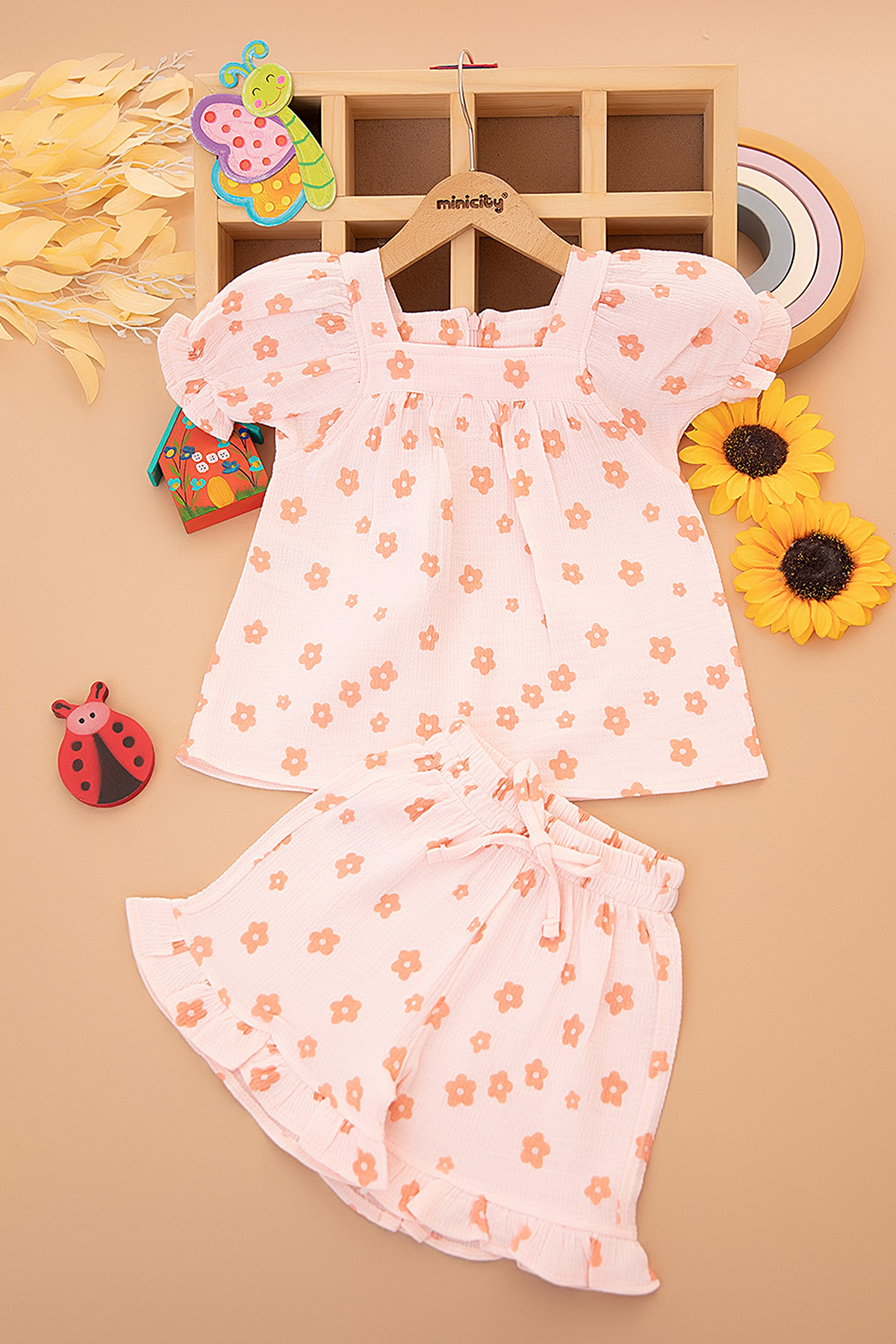 Kız Çocuk Papatya Müslin Şortlu Takım - 1689 (3-6 Yaş)