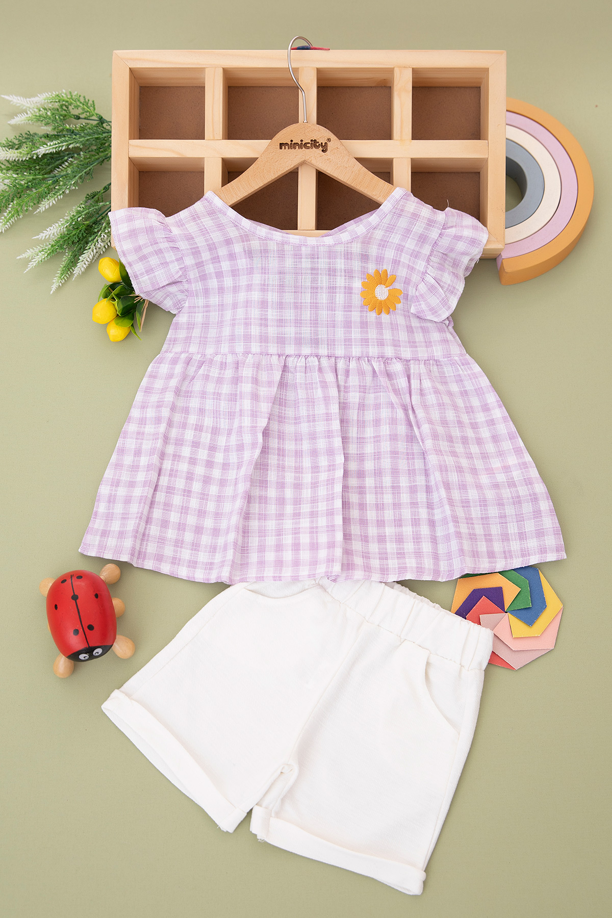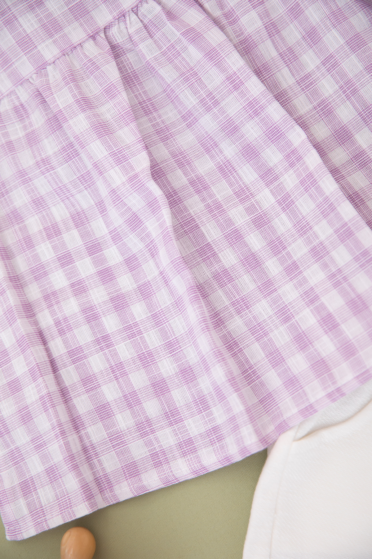 Kız Çocuk Papatya Nakışlı Ekose Takım - 24354 (3-6 Yaş)