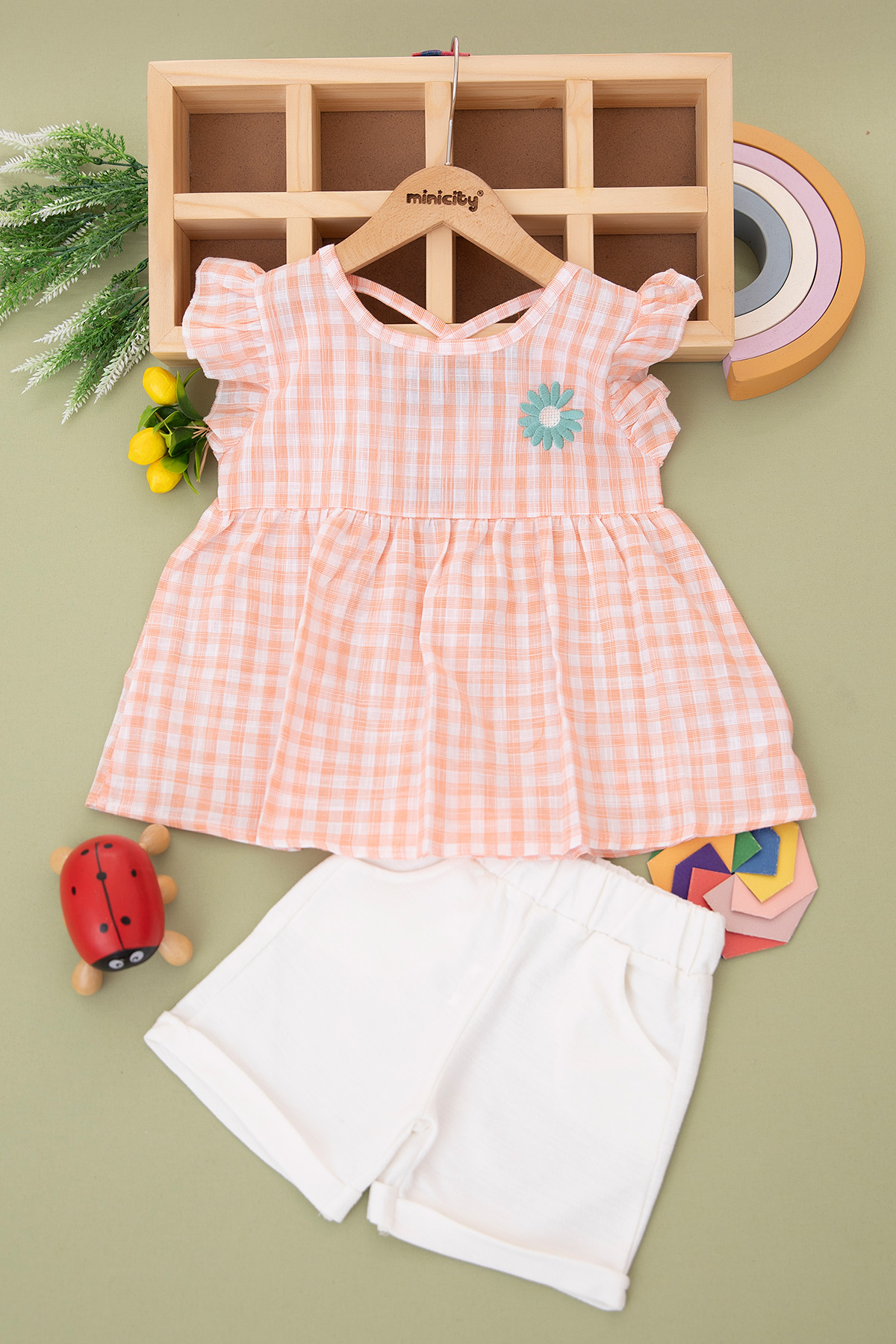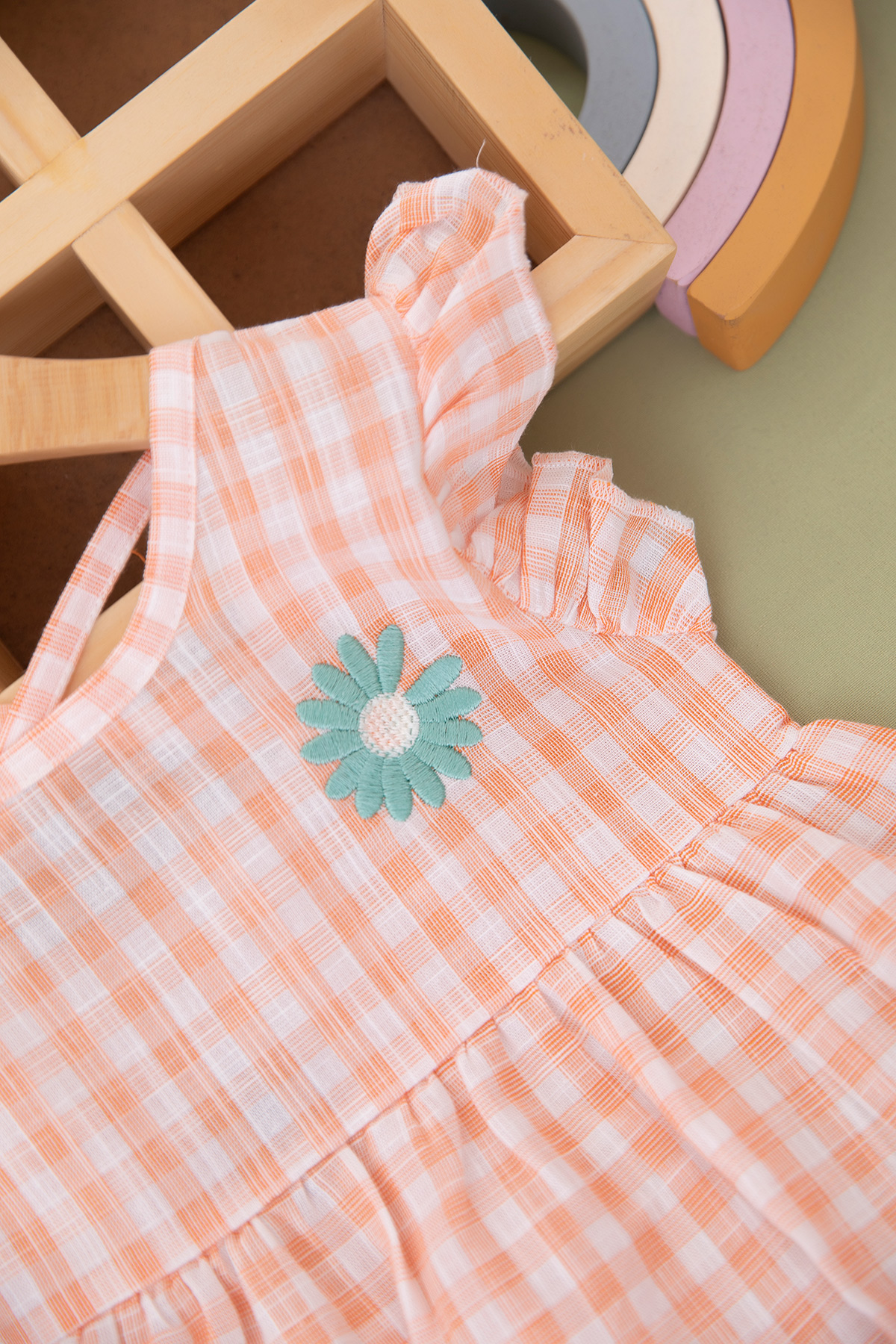 Kız Çocuk Papatya Nakışlı Ekose Takım - 24354 (3-6 Yaş)