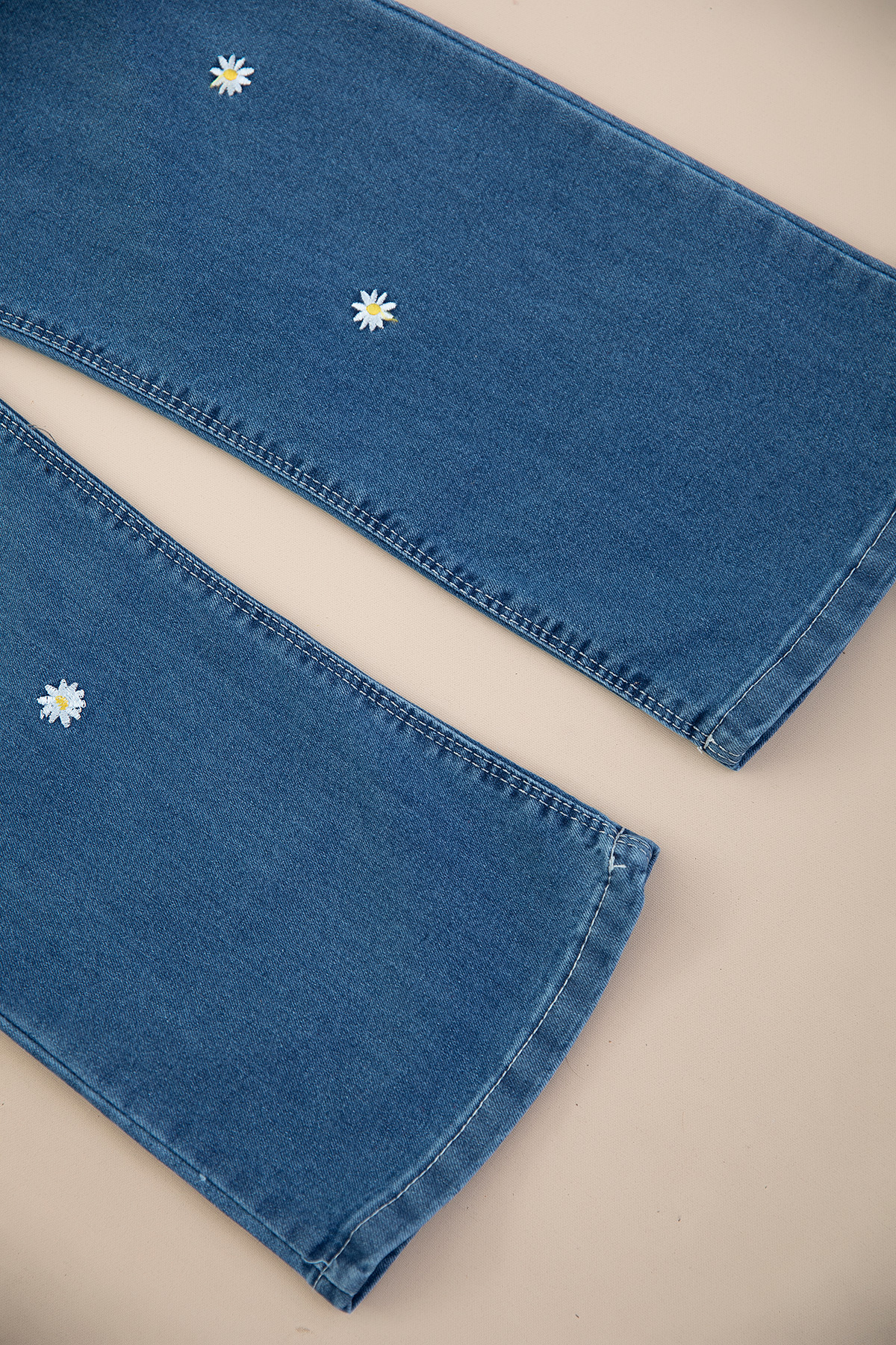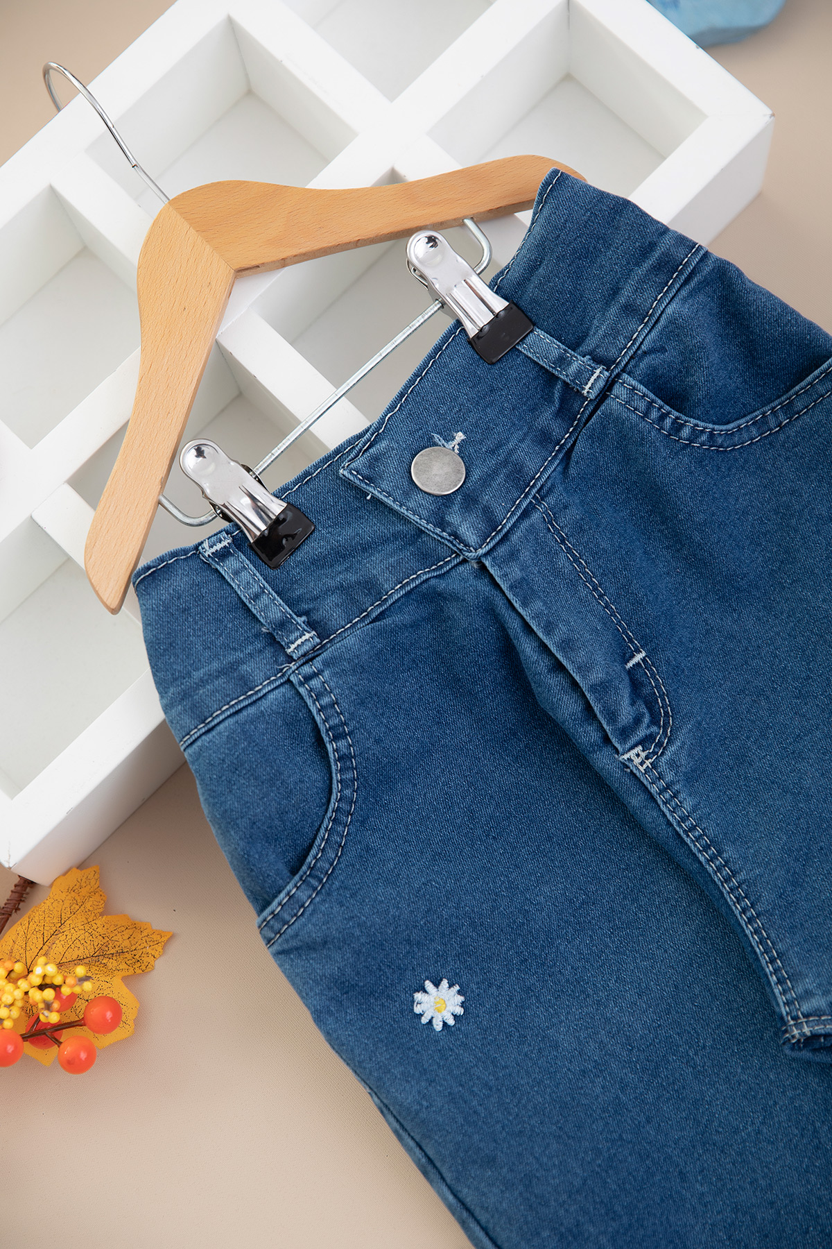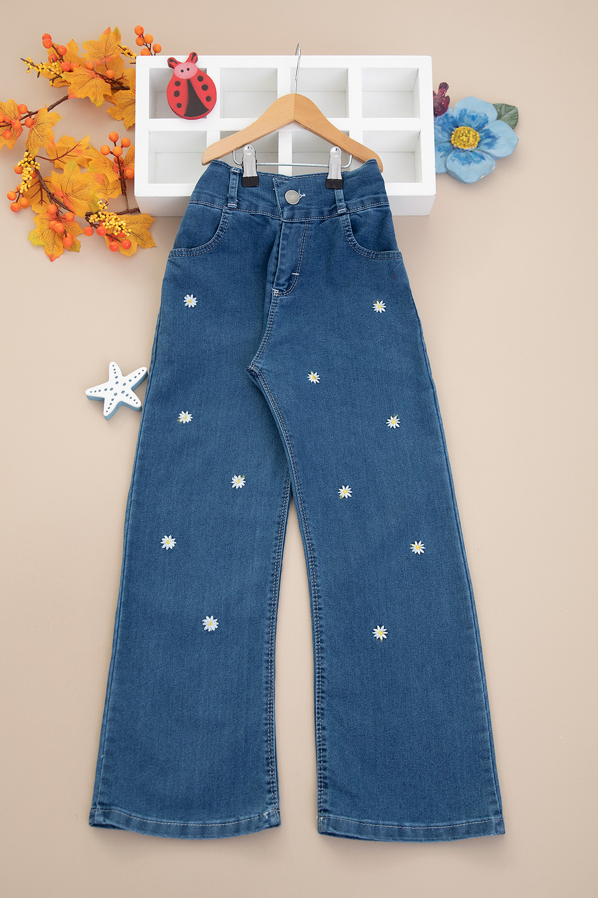 Kız Çocuk Papatya Nakışlı Kot Pantolon - 4163 (2-9 Yaş)