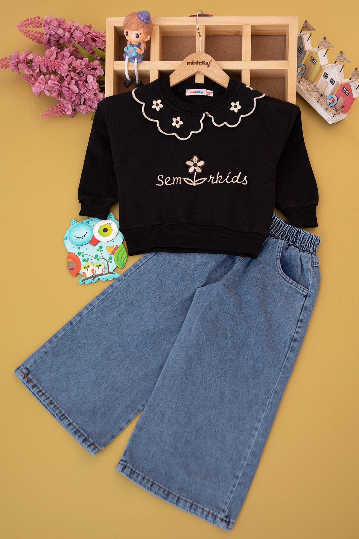 Kız Çocuk Papatya Nakışlı Pantolon Takım - 2707 (3-7 Yaş)