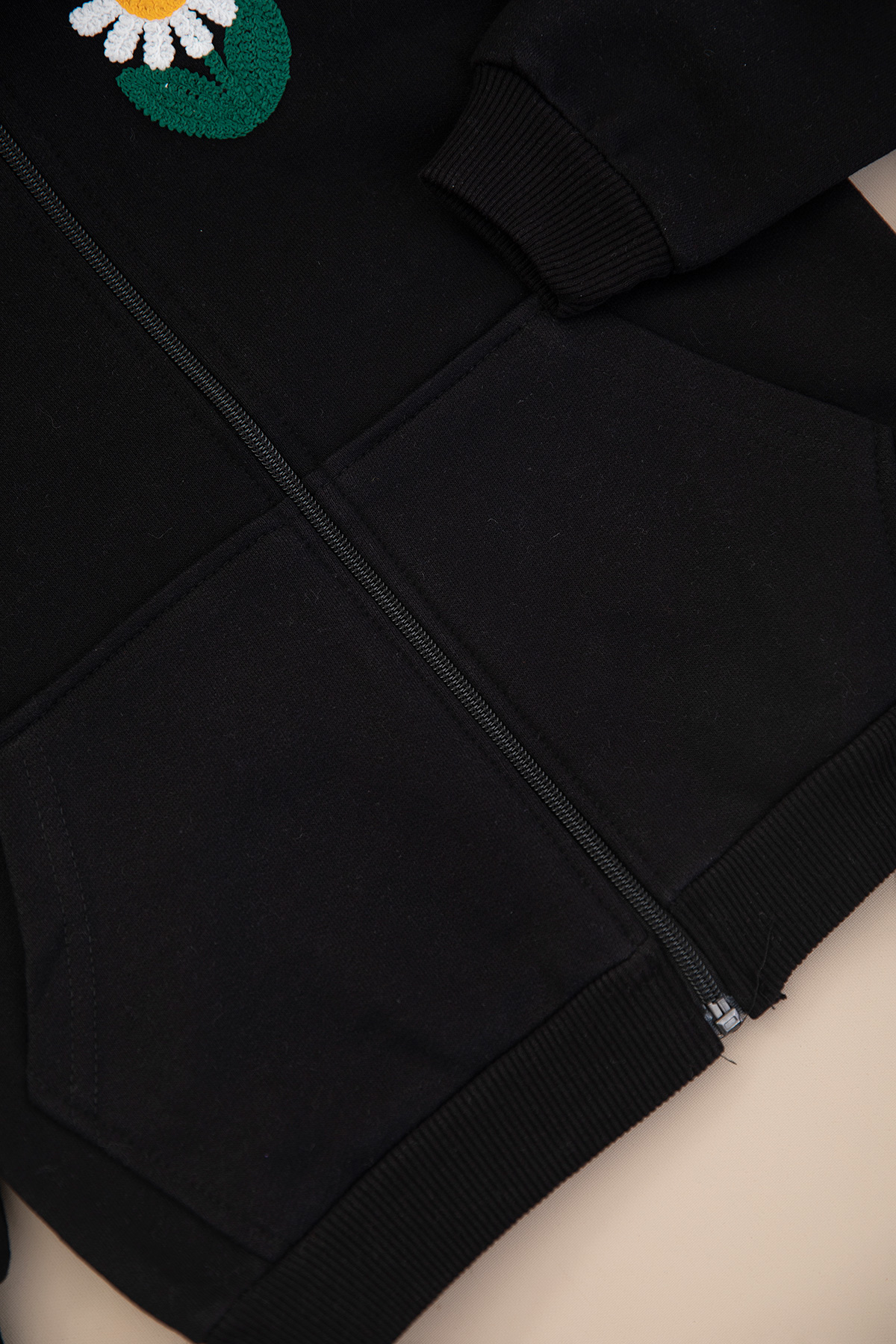 Kız Çocuk Papatya Nakışlı Şardonlu Hırka (8-12 Yaş)
