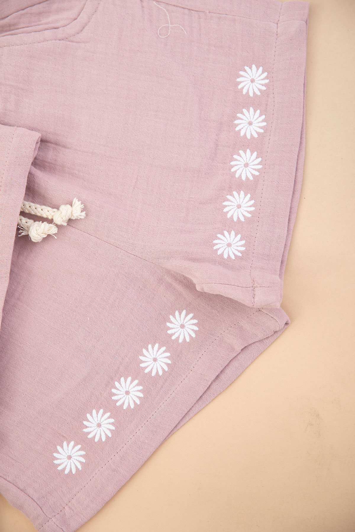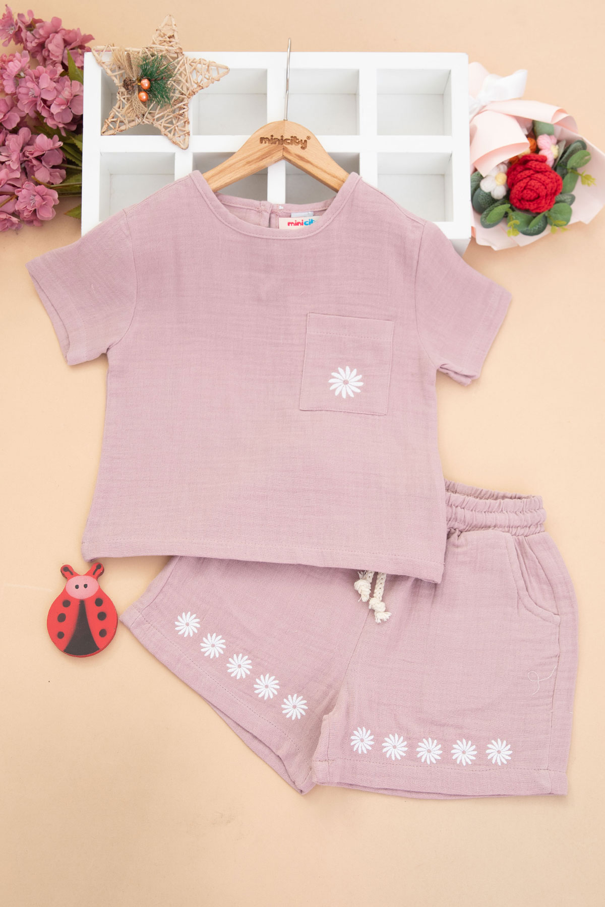 Kız Çocuk Papatya Nakışlı Şortlu Takım - 625841 (6-9 Yaş)