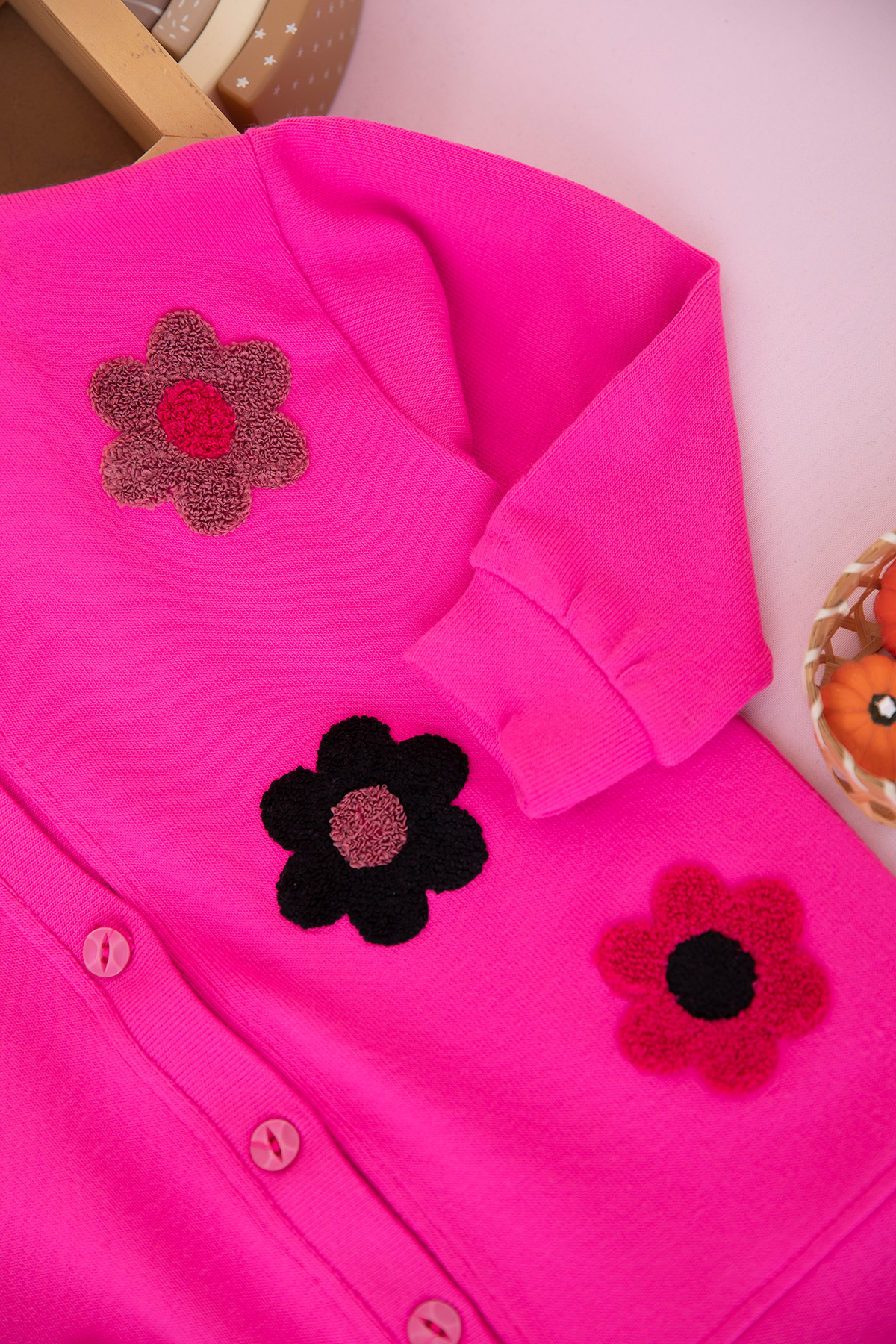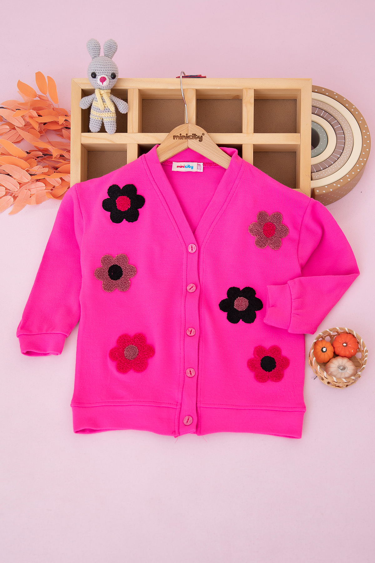 Kız Çocuk Papatya Nakışlı Triko Hırka - 60910 (5-12 Yaş)