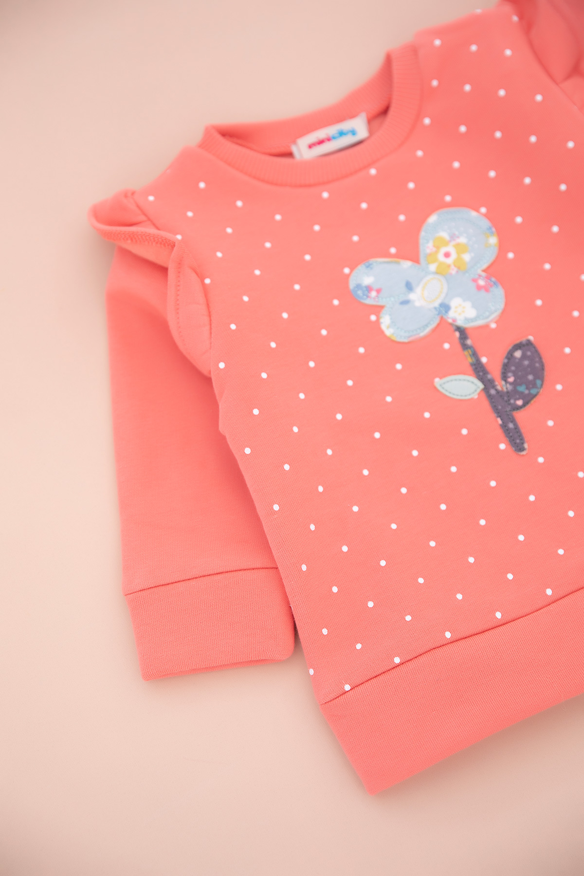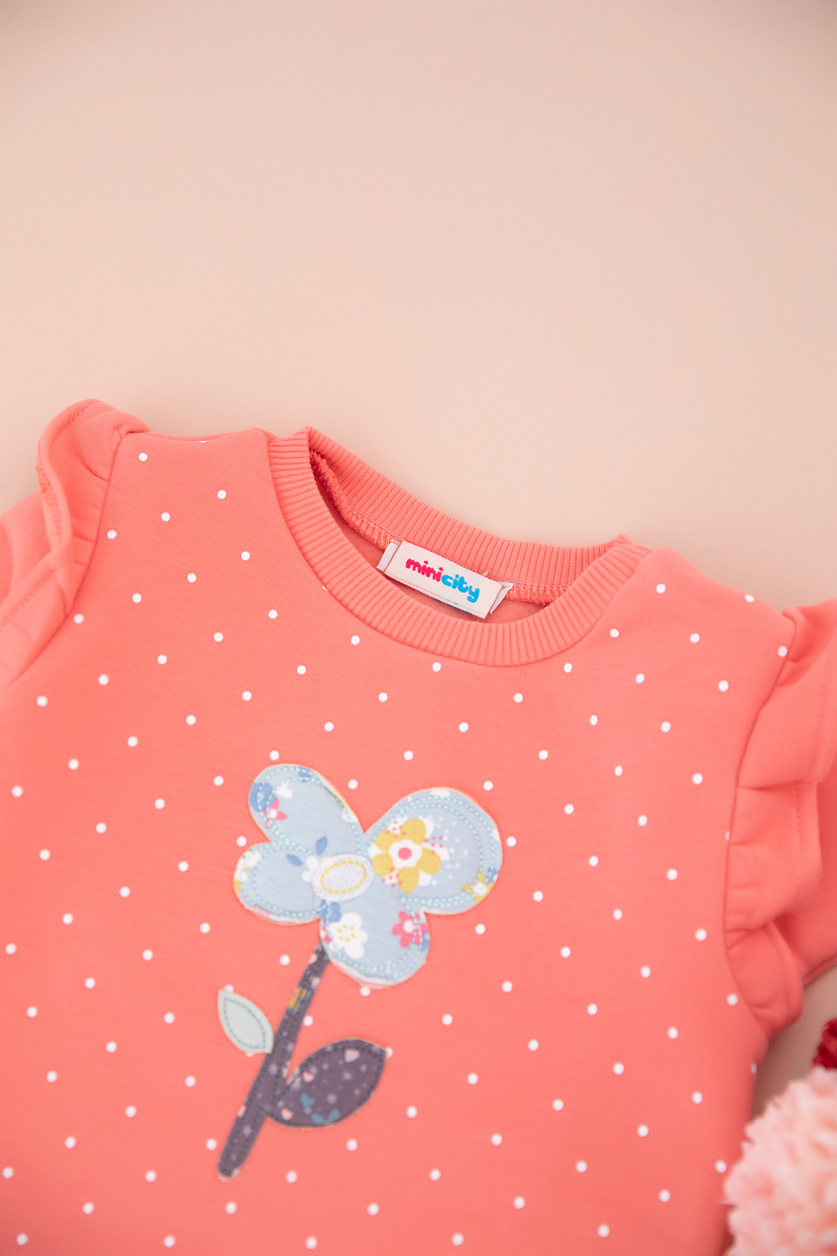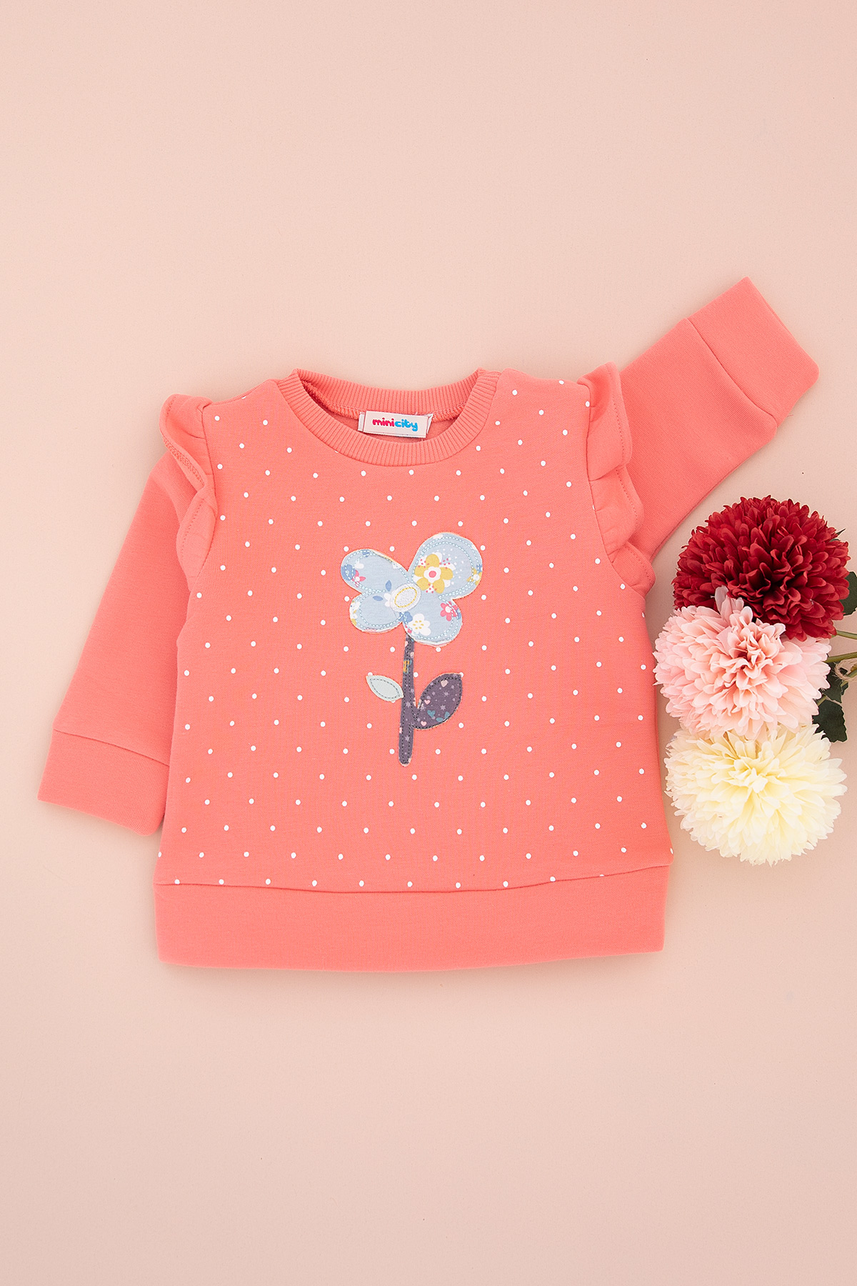 Kız Çocuk Papatya Nakışlı Üçip Sweat - 5561 (1-4 Yaş)