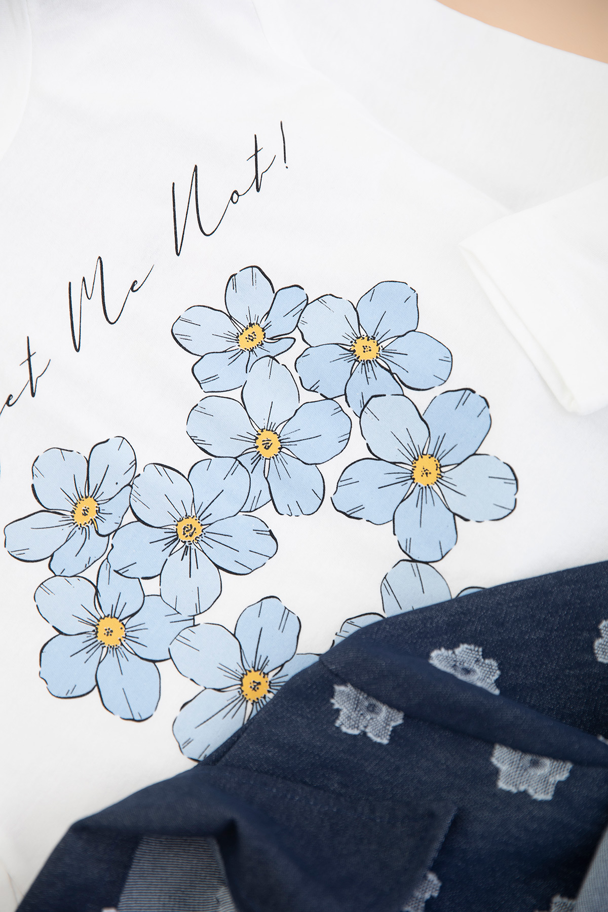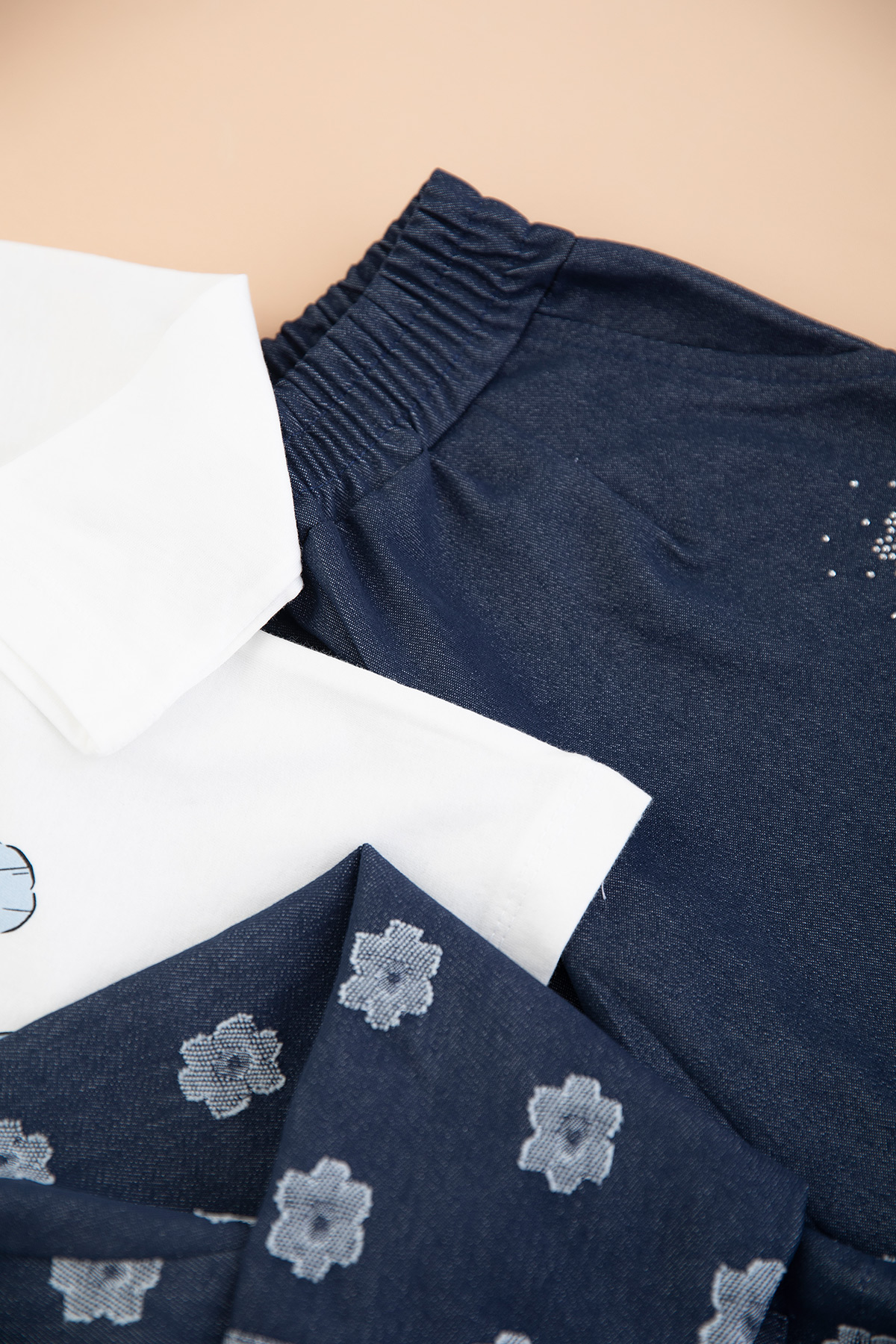 Kız Çocuk Papatya Nakışlı Üçlü Takım - 347 (9-12 Yaş)