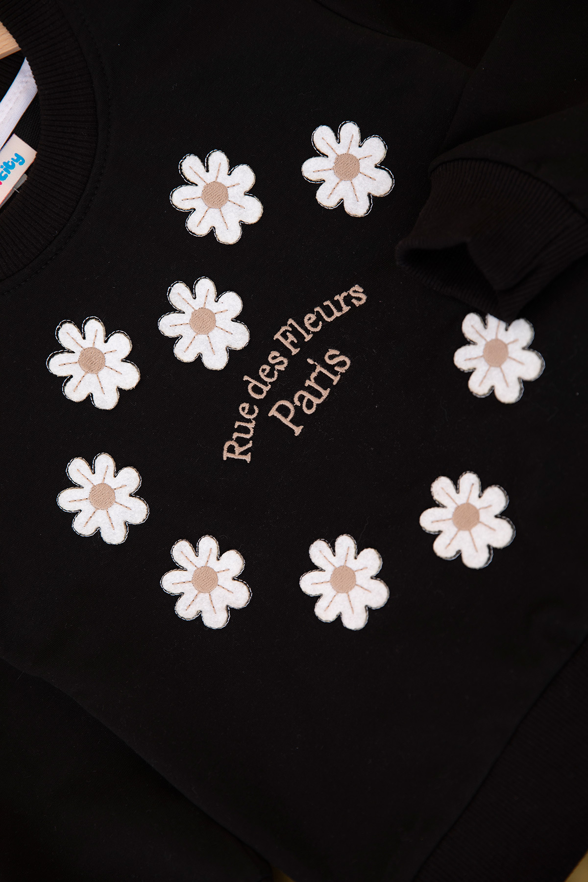 Kız Çocuk Papatya Paris Nakışlı Takım (3-10 Yaş)