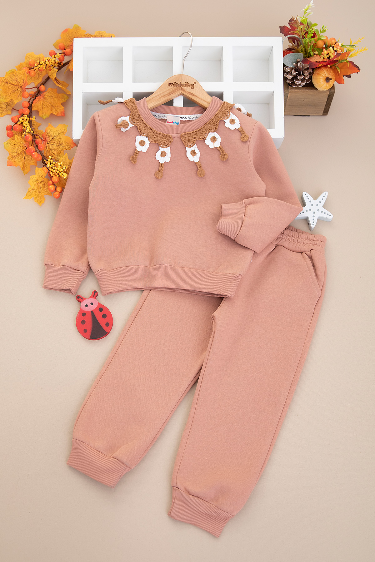 Kız Çocuk Papatya Yakalı Üçip Takım - 60315 (2-5 Yaş)