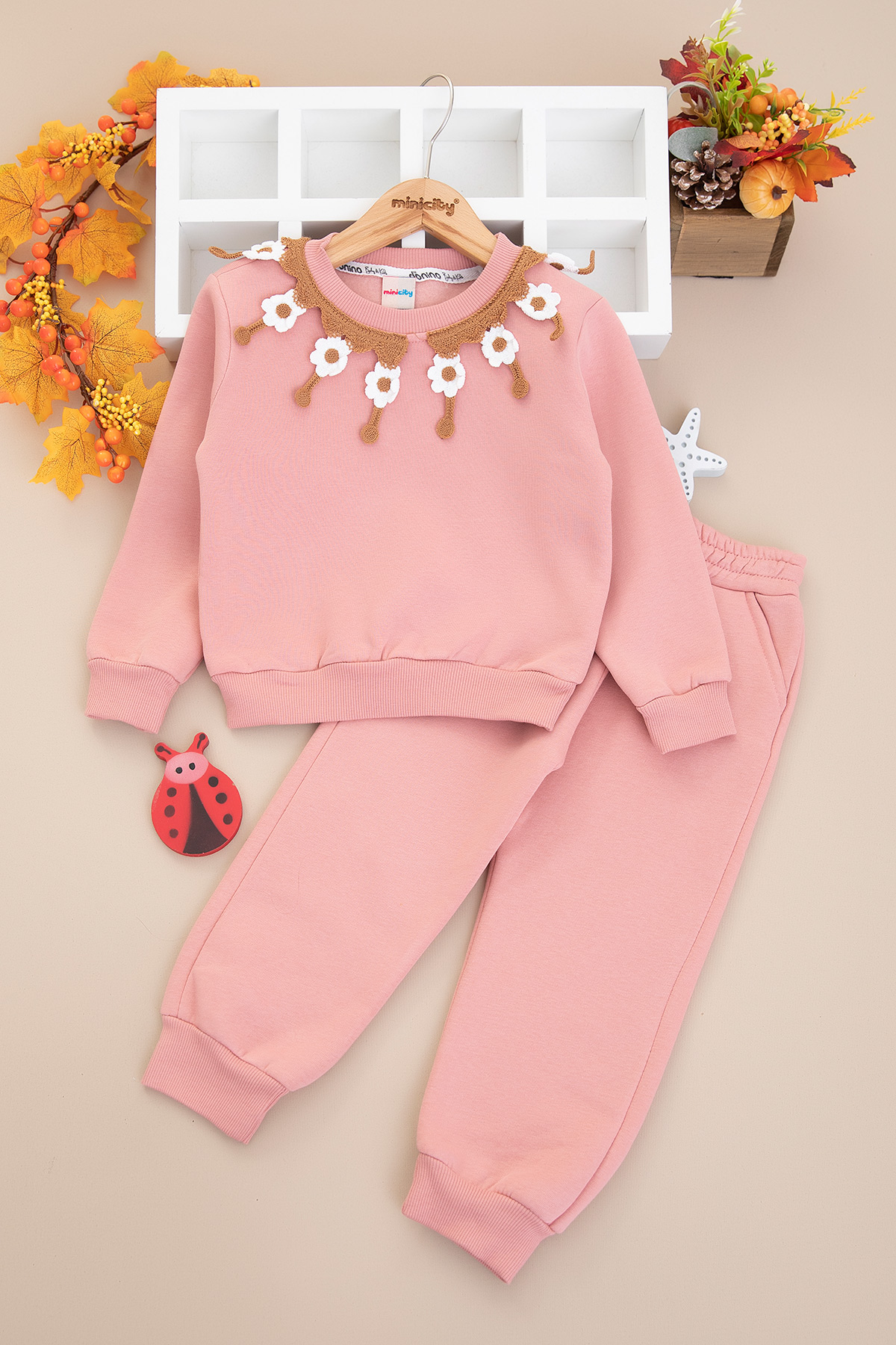 Kız Çocuk Papatya Yakalı Üçip Takım - 60315 (2-5 Yaş)