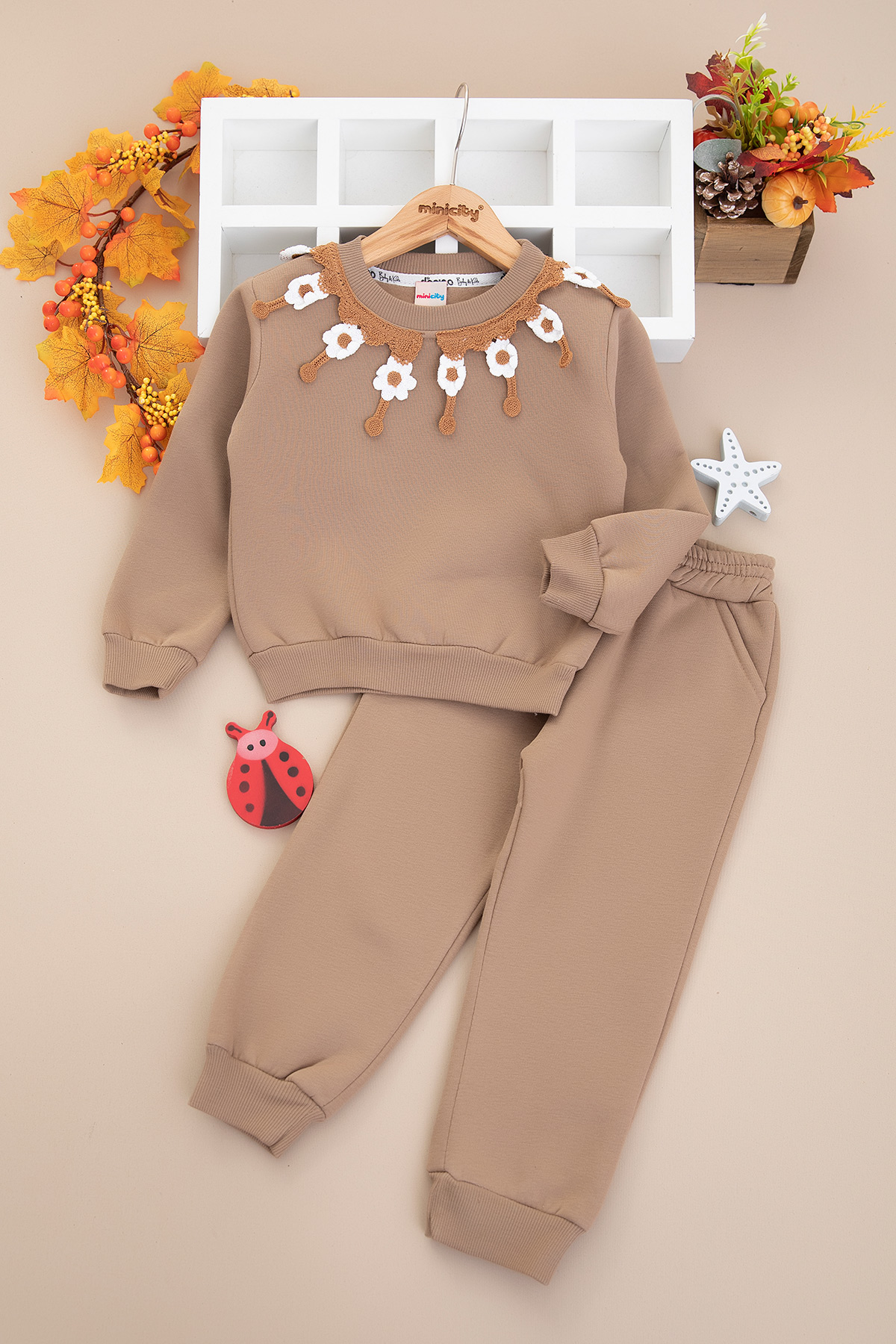 Kız Çocuk Papatya Yakalı Üçip Takım - 60315 (2-5 Yaş)