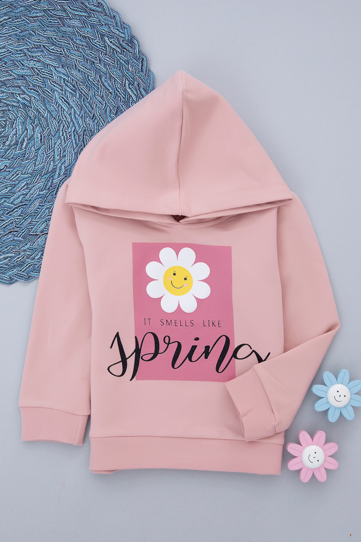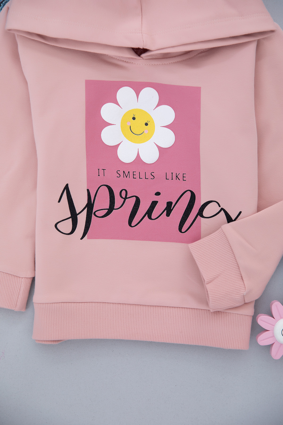 Kız Çocuk Papatyalı Kapşonlu Sweat - 9437 (1-4 Yaş)
