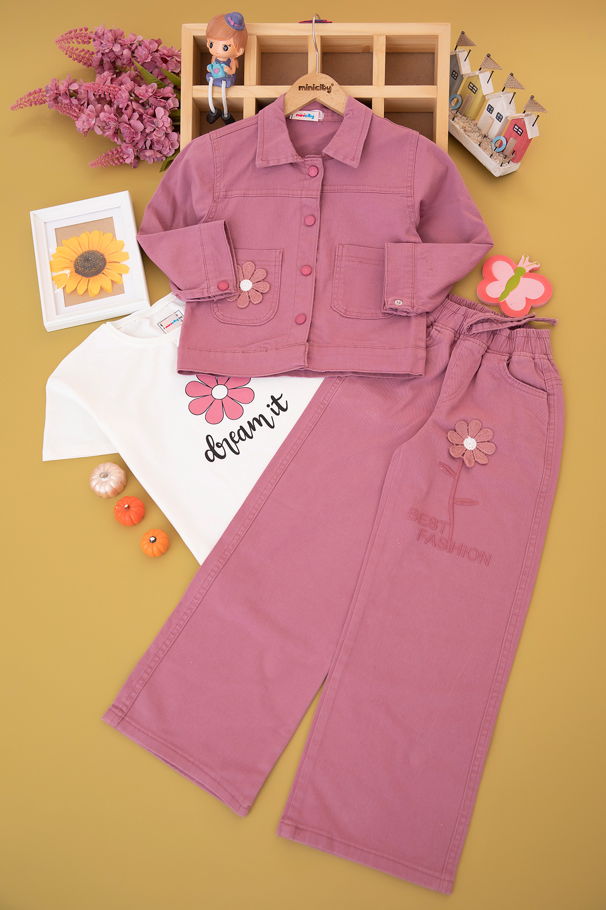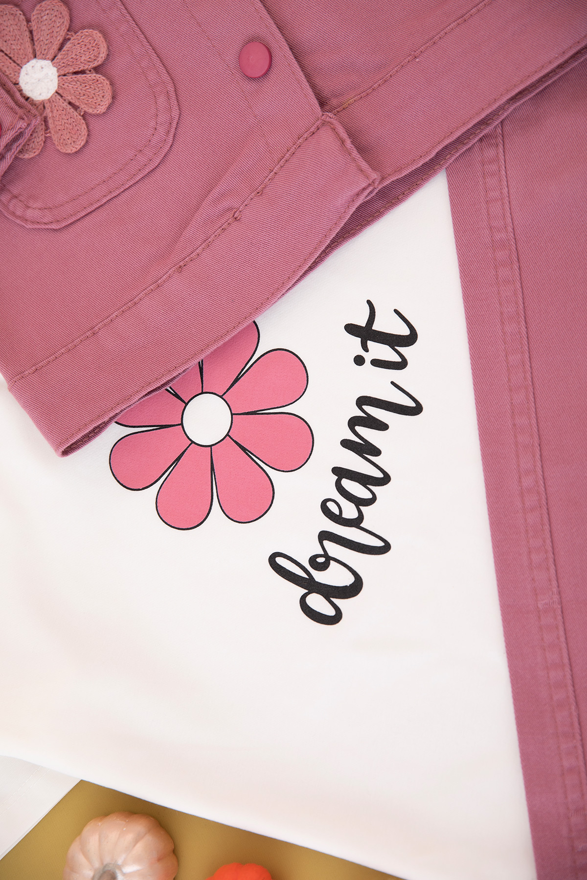 Kız Çocuk Papatyalı Montlu Takım - 70735 (5-12 Yaş)