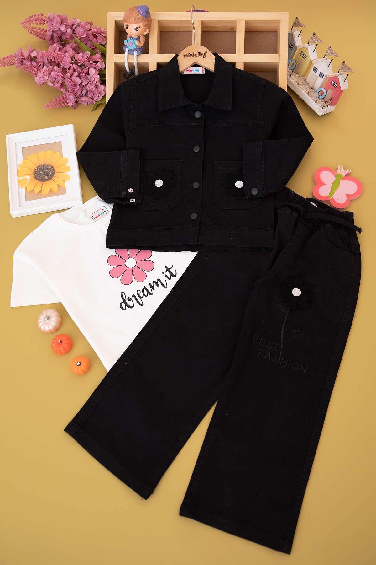Kız Çocuk Papatyalı Montlu Takım - 70735 (5-12 Yaş)