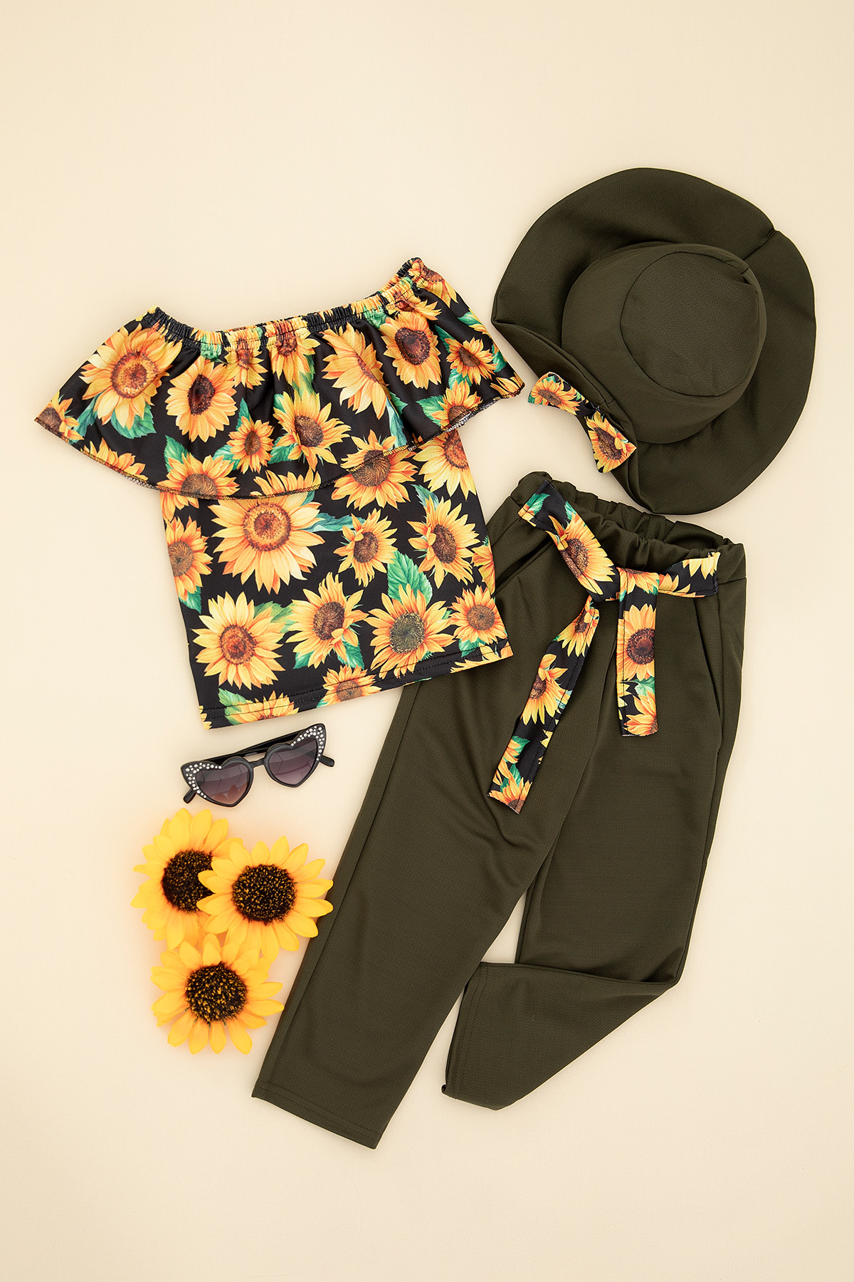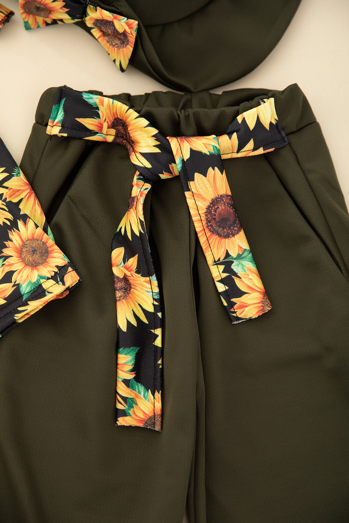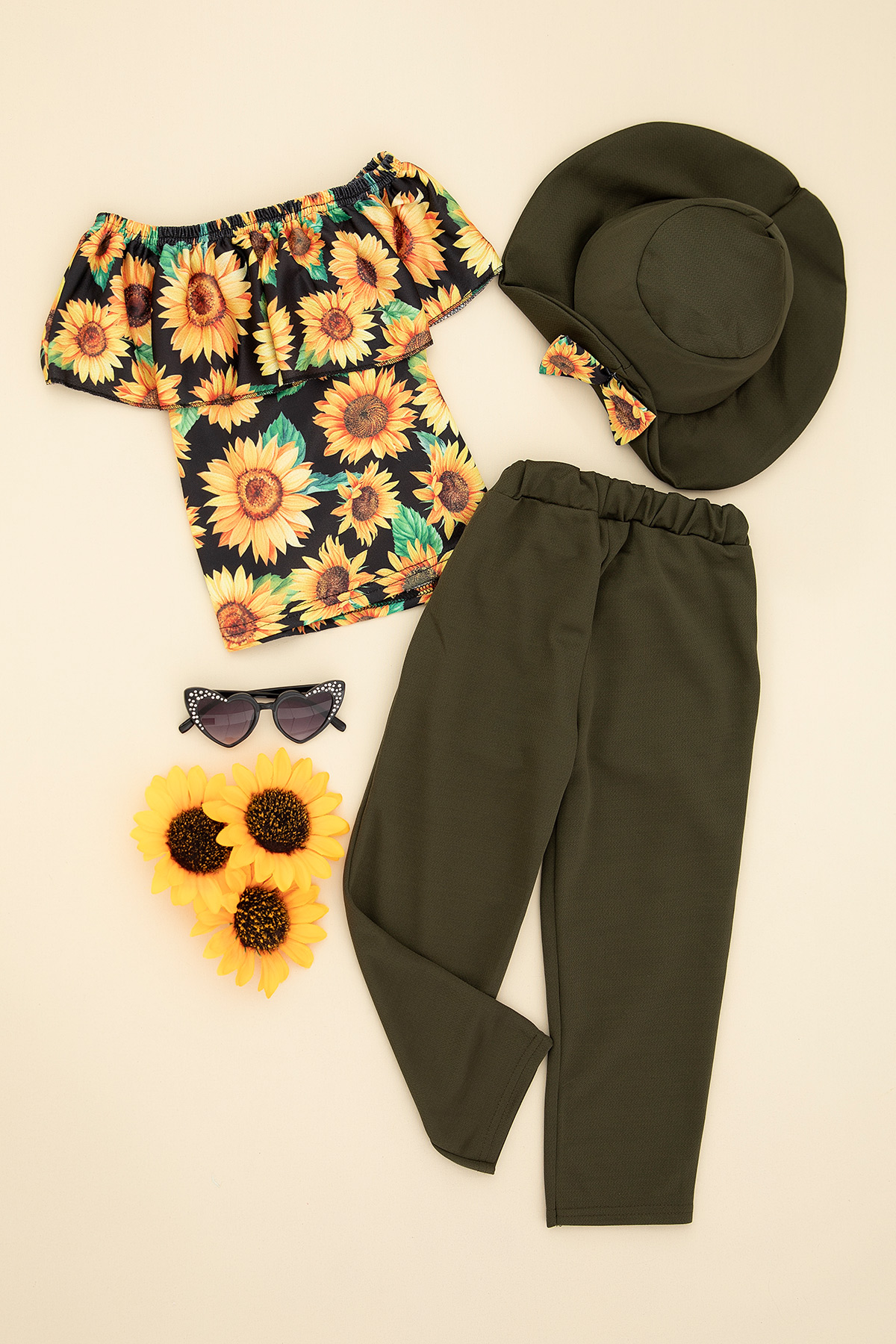 Kız Çocuk Papatyalı Şapkalı Pantolonlu Takım (3-10 Yaş)