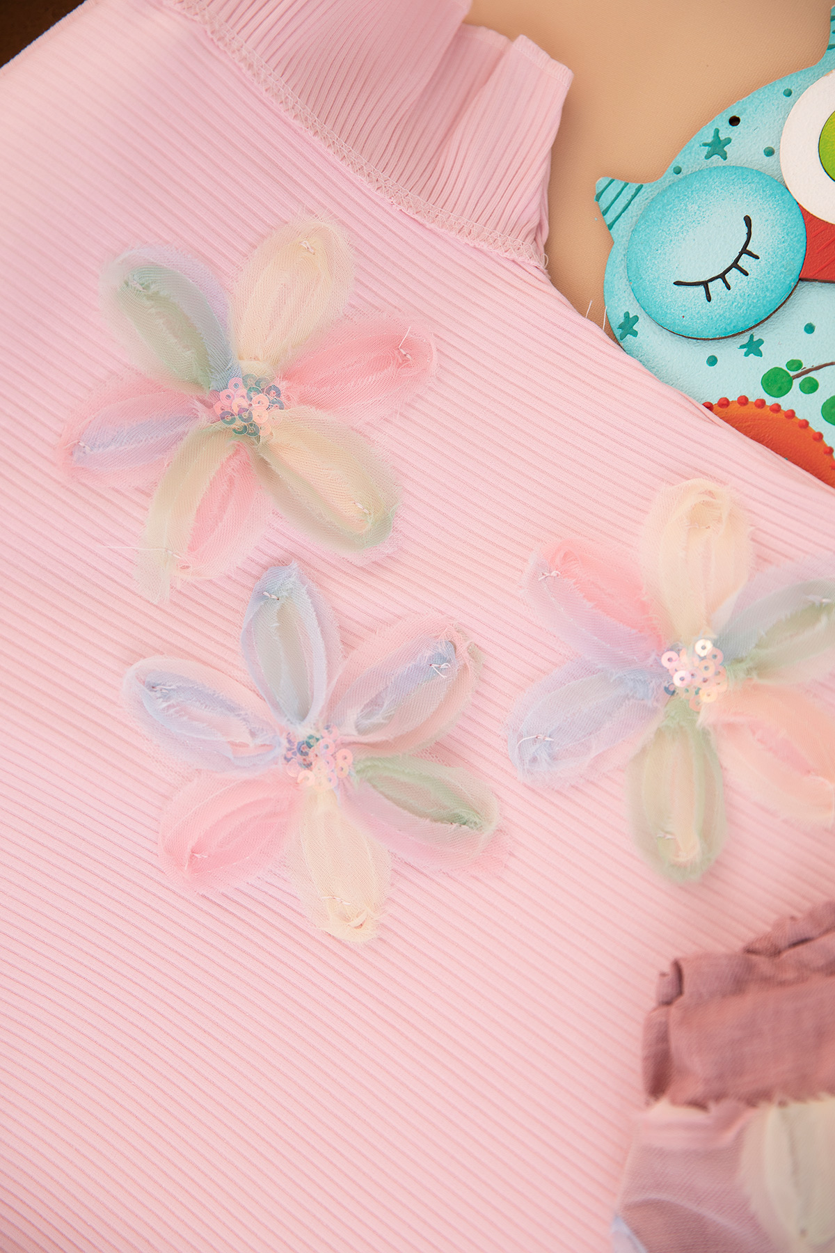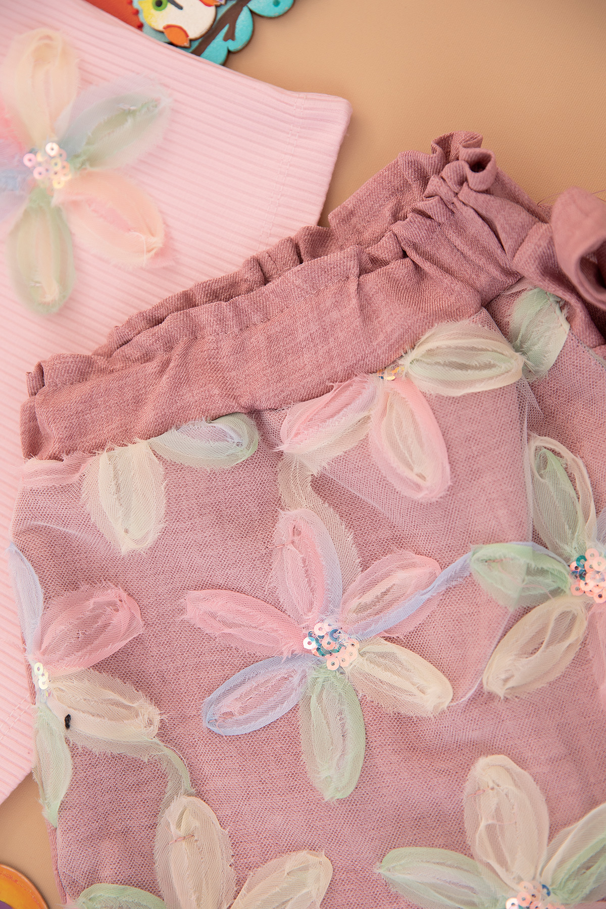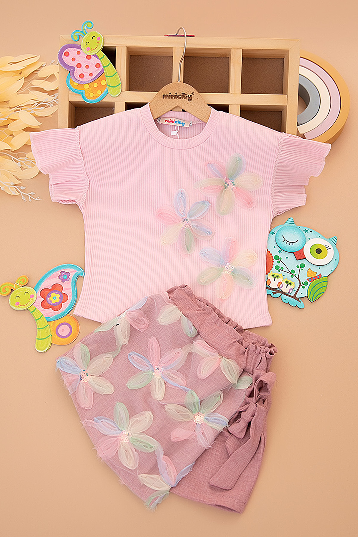 Kız Çocuk Papatyalı Şort Etekli Takım - 211 (7-10 Yaş)
