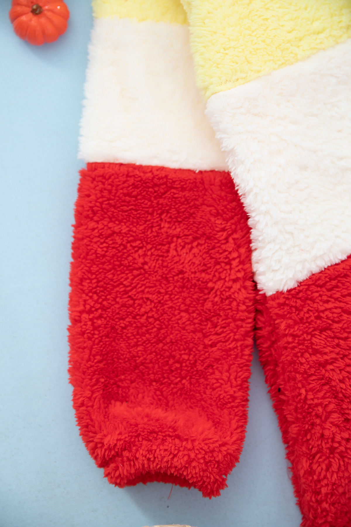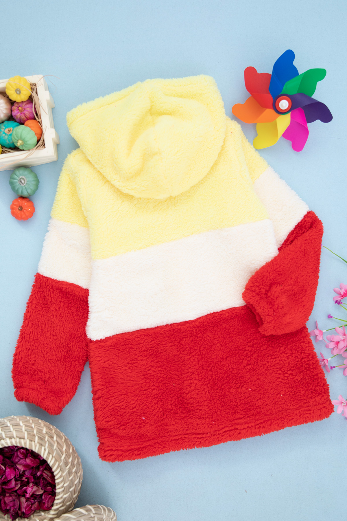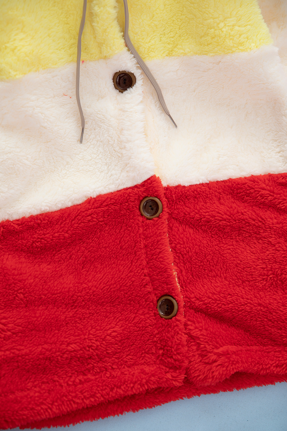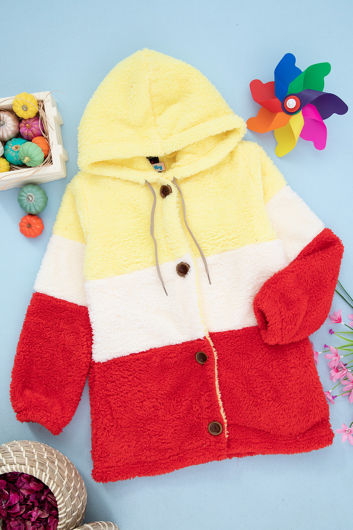 Kız Çocuk Parçalı Düğmeli Peluş Hırka - 618 (5-9 Yaş)