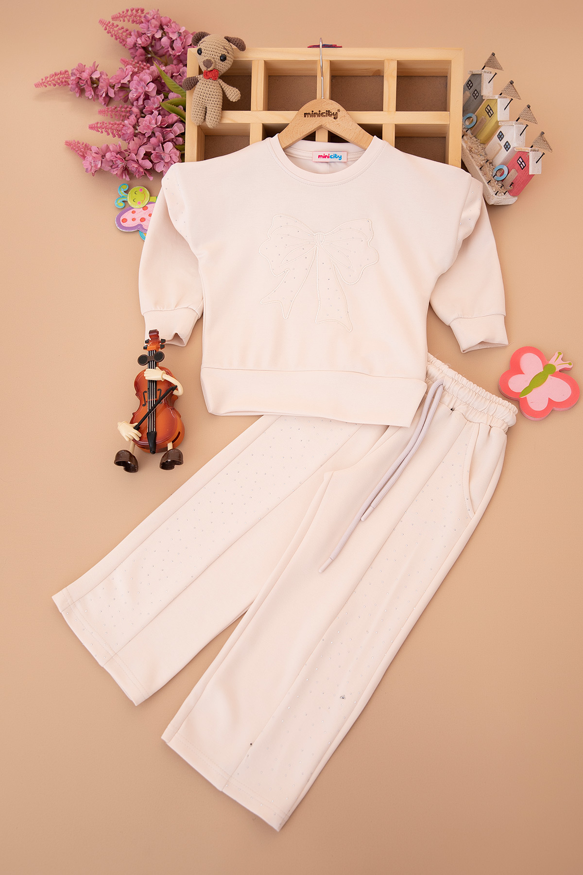 Kız Çocuk Parçalı Fiyonk Nakışlı Takım - 5103 (4-11 Yaş)