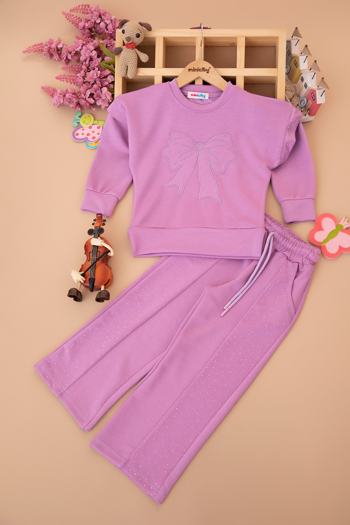 Kız Çocuk Parçalı Fiyonk Nakışlı Takım - 5103 (4-11 Yaş)