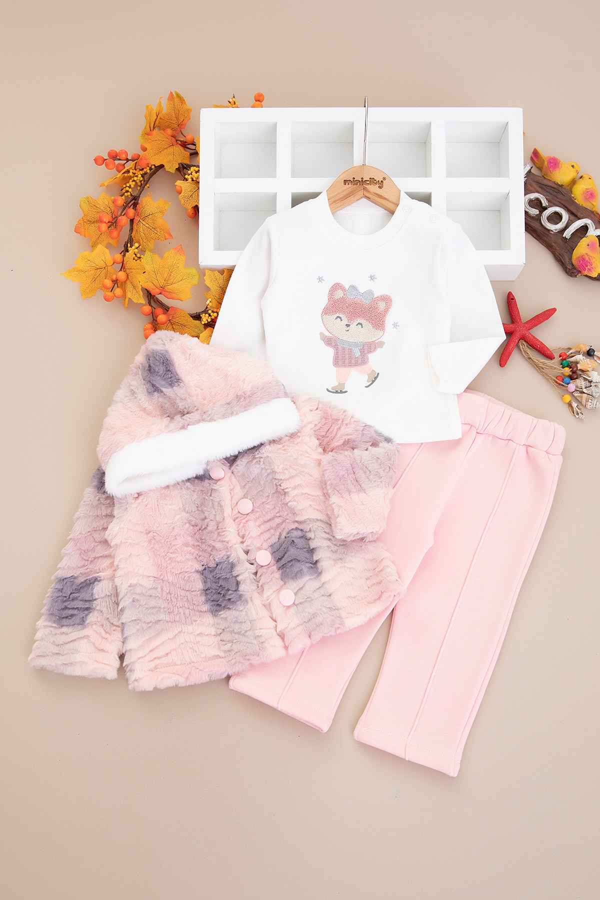 Kız Çocuk Patenci Peluş Montlu Takım - 8414 (1-3 Yaş)