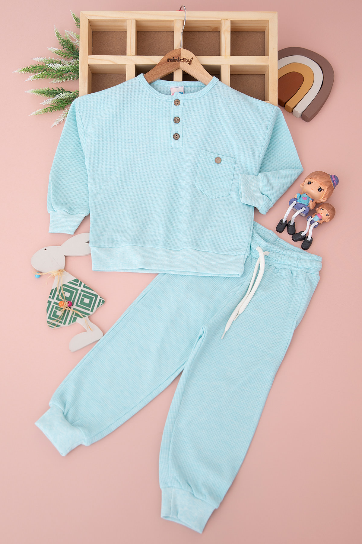 Kız Çocuk Patlı Düğmeli Renkli Takım (3-8 Yaş)