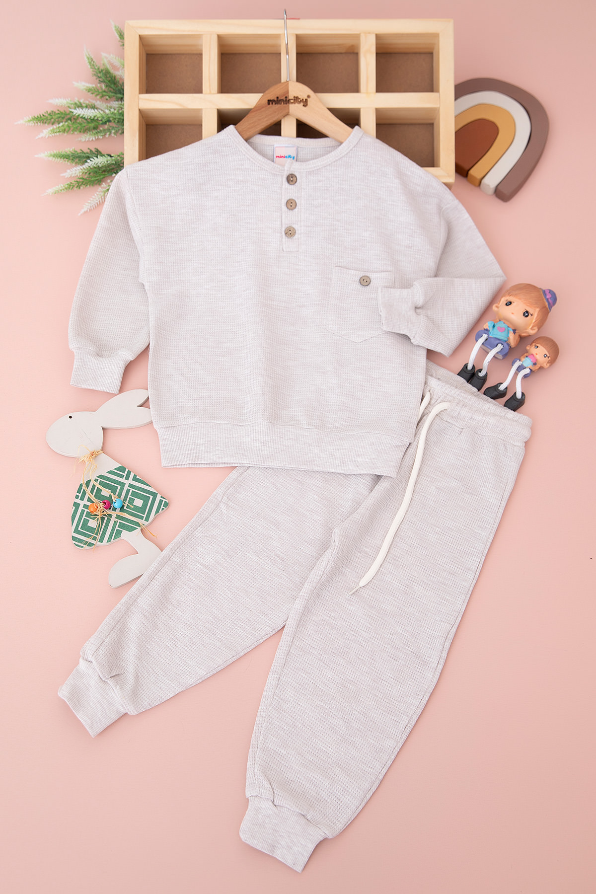 Kız Çocuk Patlı Düğmeli Renkli Takım (3-8 Yaş)