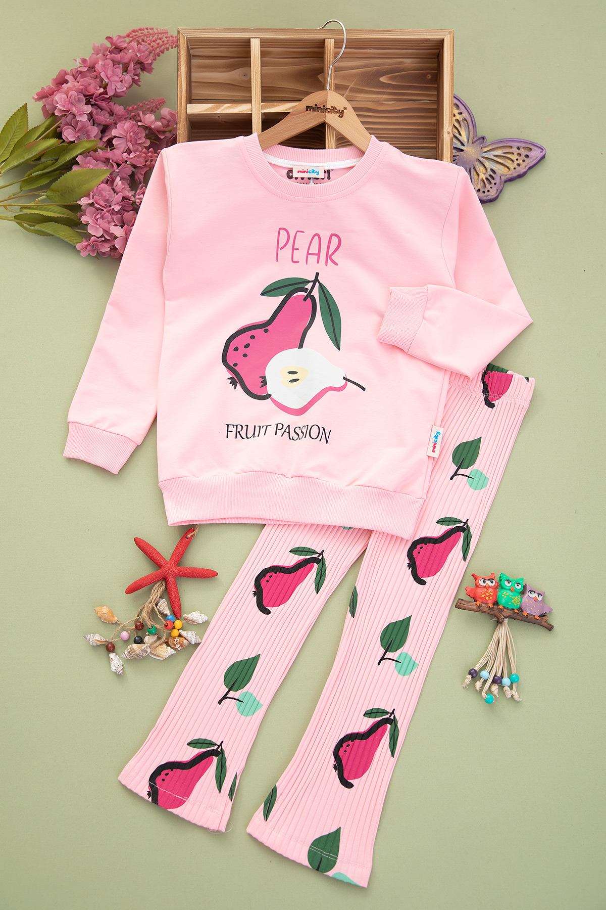 Kız Çocuk Pear Baskılı Alt Fitilli Takım - 2362 (7-10 Yaş)