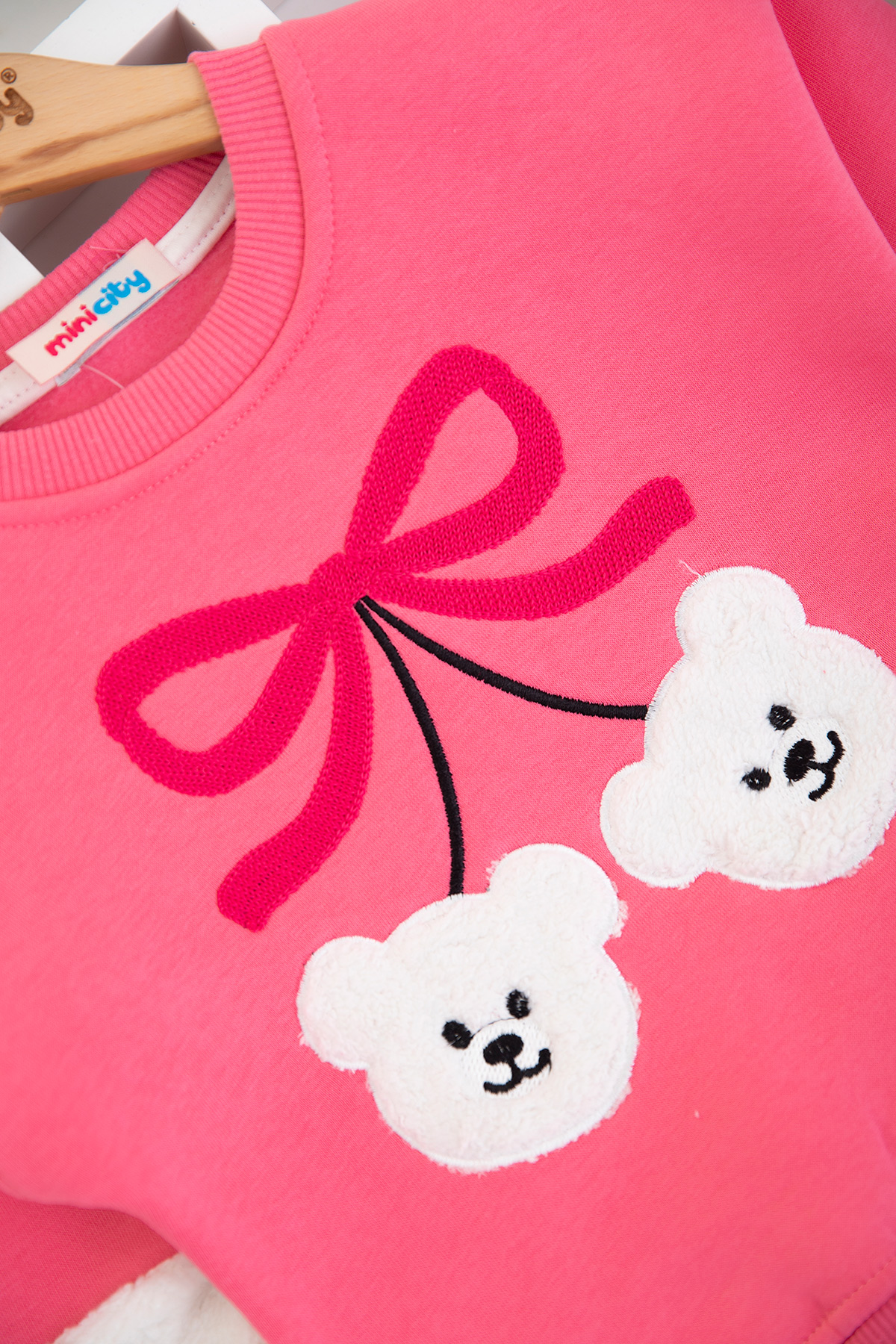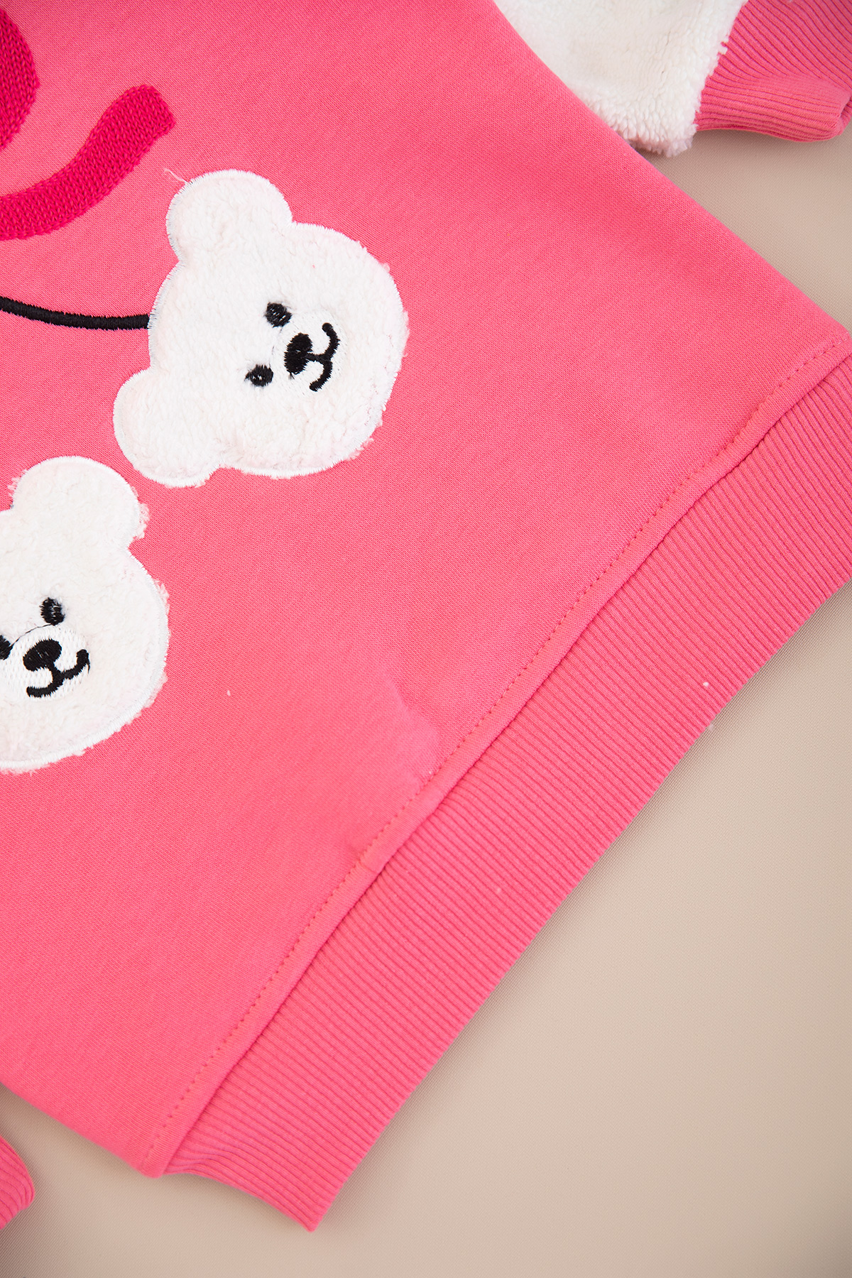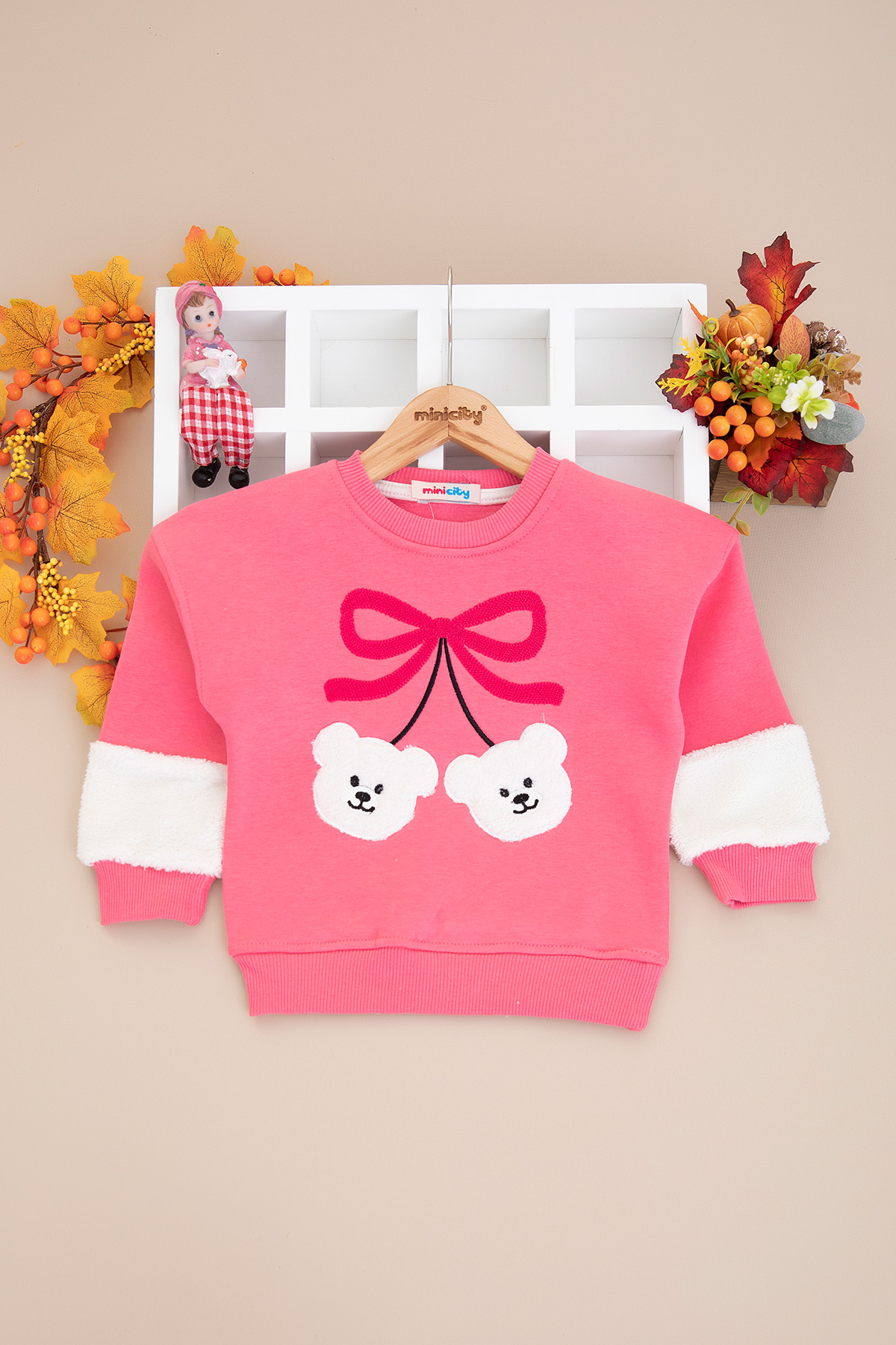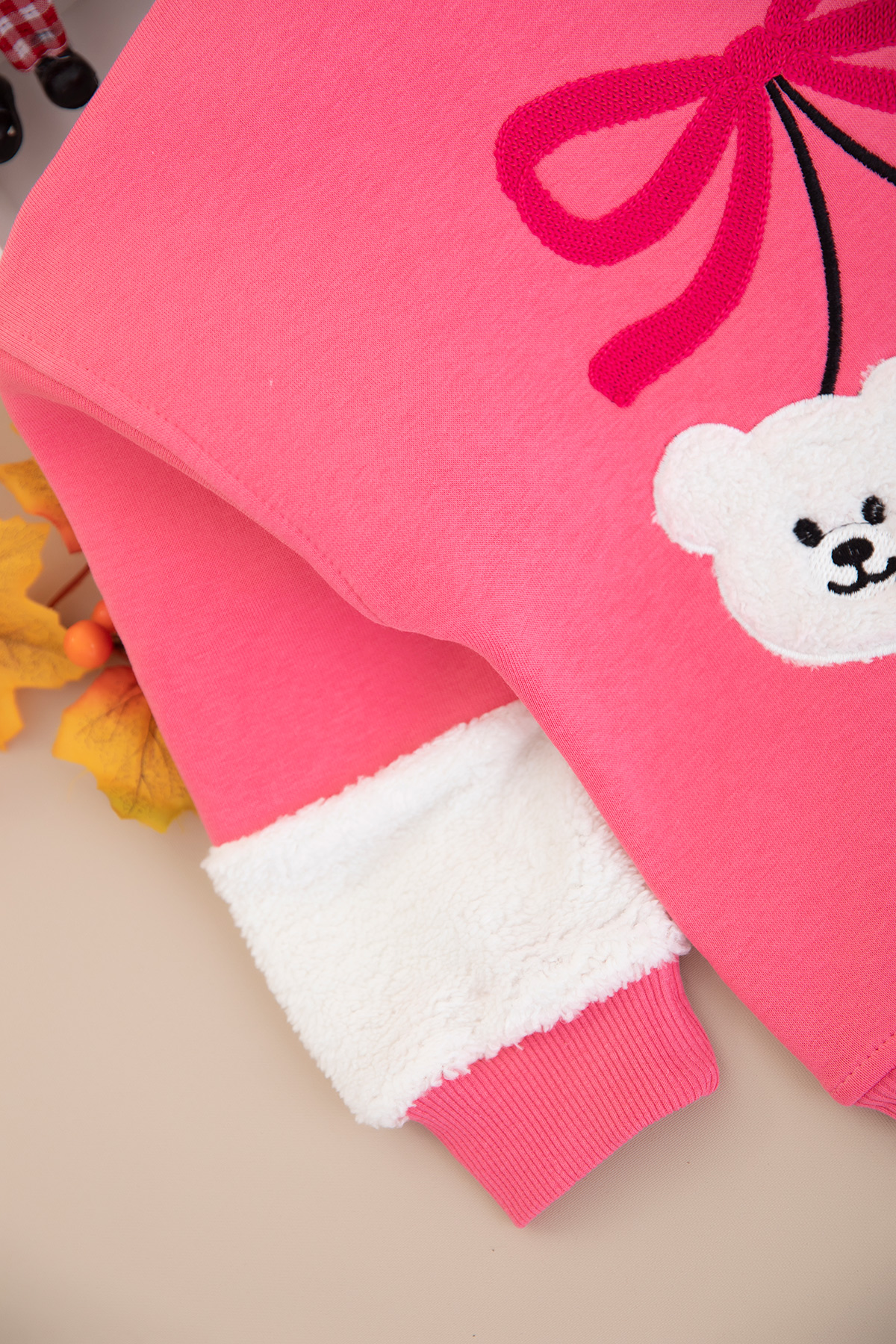 Kız Çocuk Peluş Ayıcıklı Üçip Sweat - 4072 (8-12 Yaş)