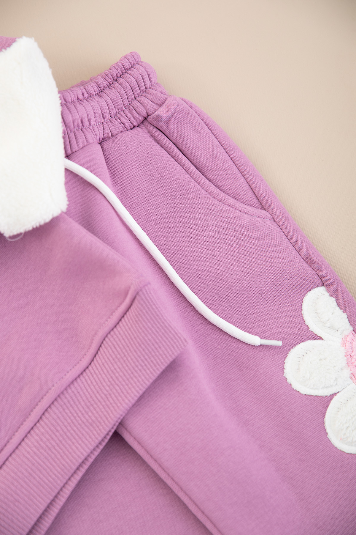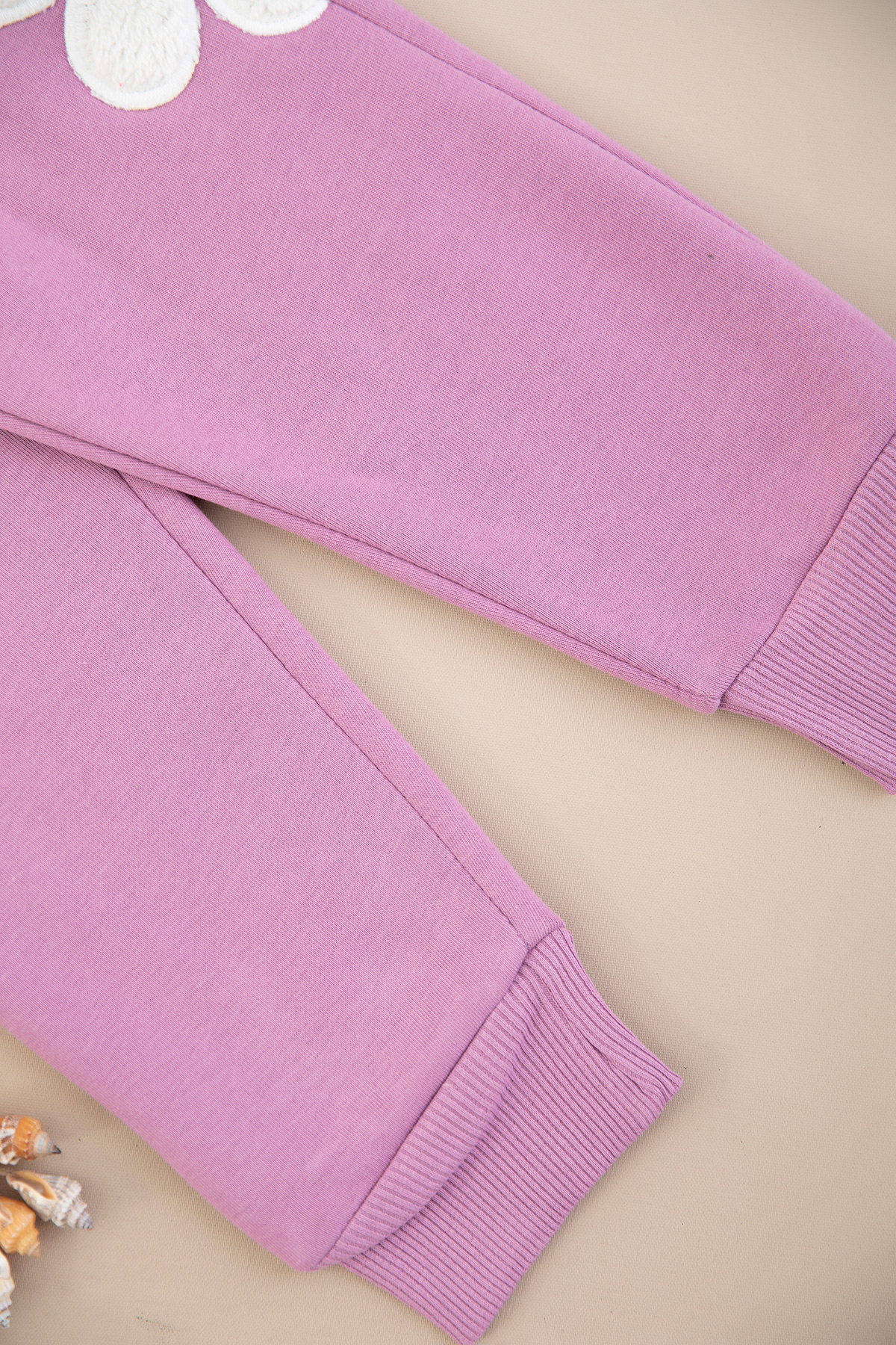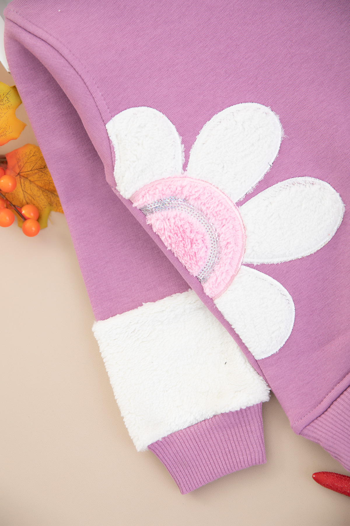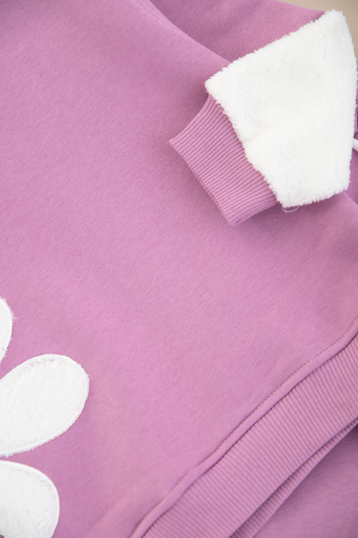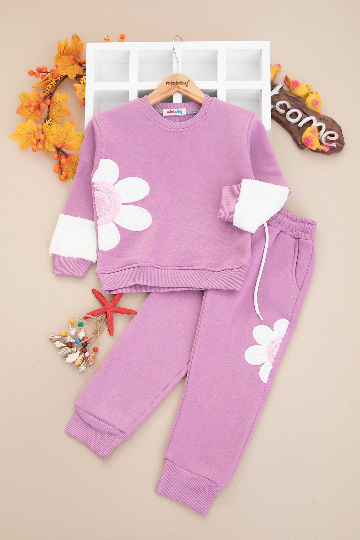 Kız Çocuk Peluş Çiçek Nakışlı Üçip Takım - 5059 (3-10 Yaş)
