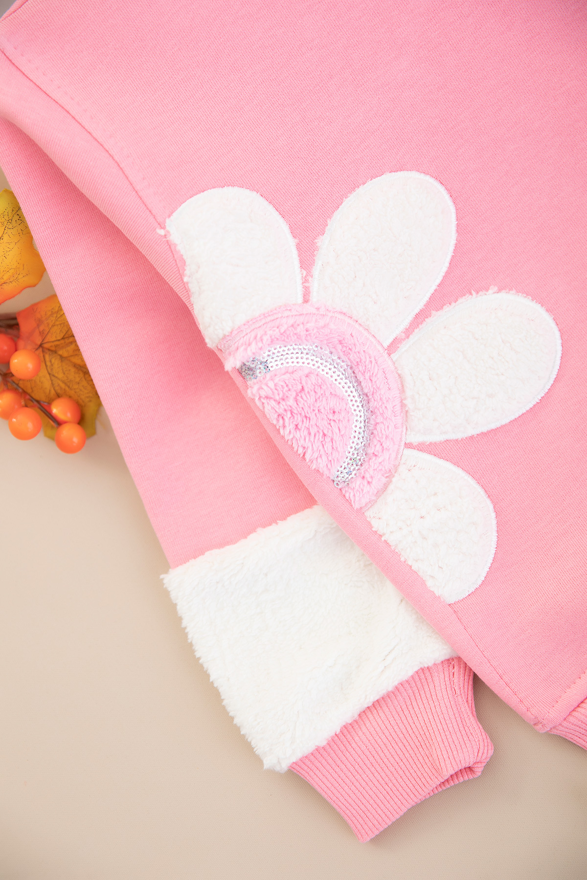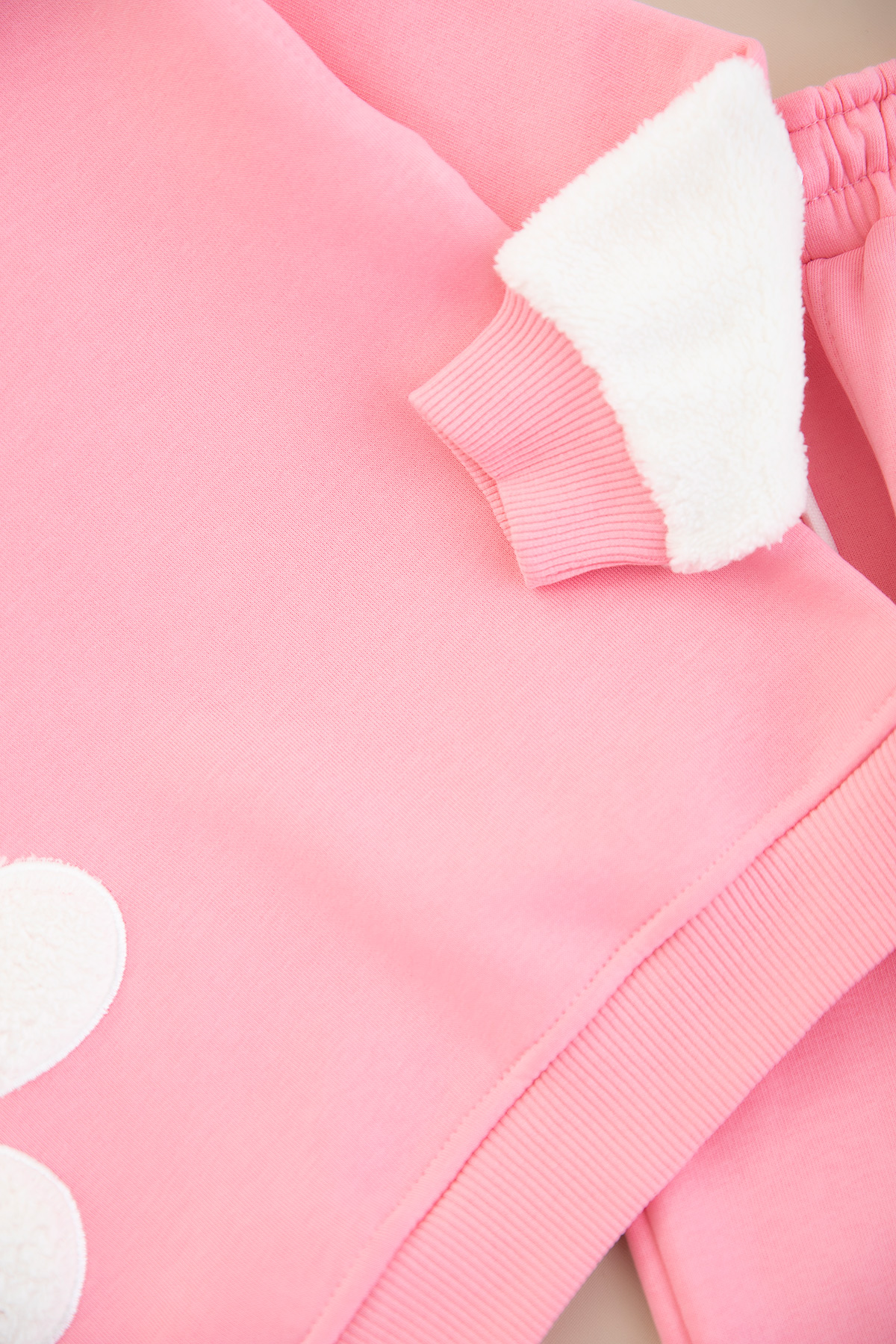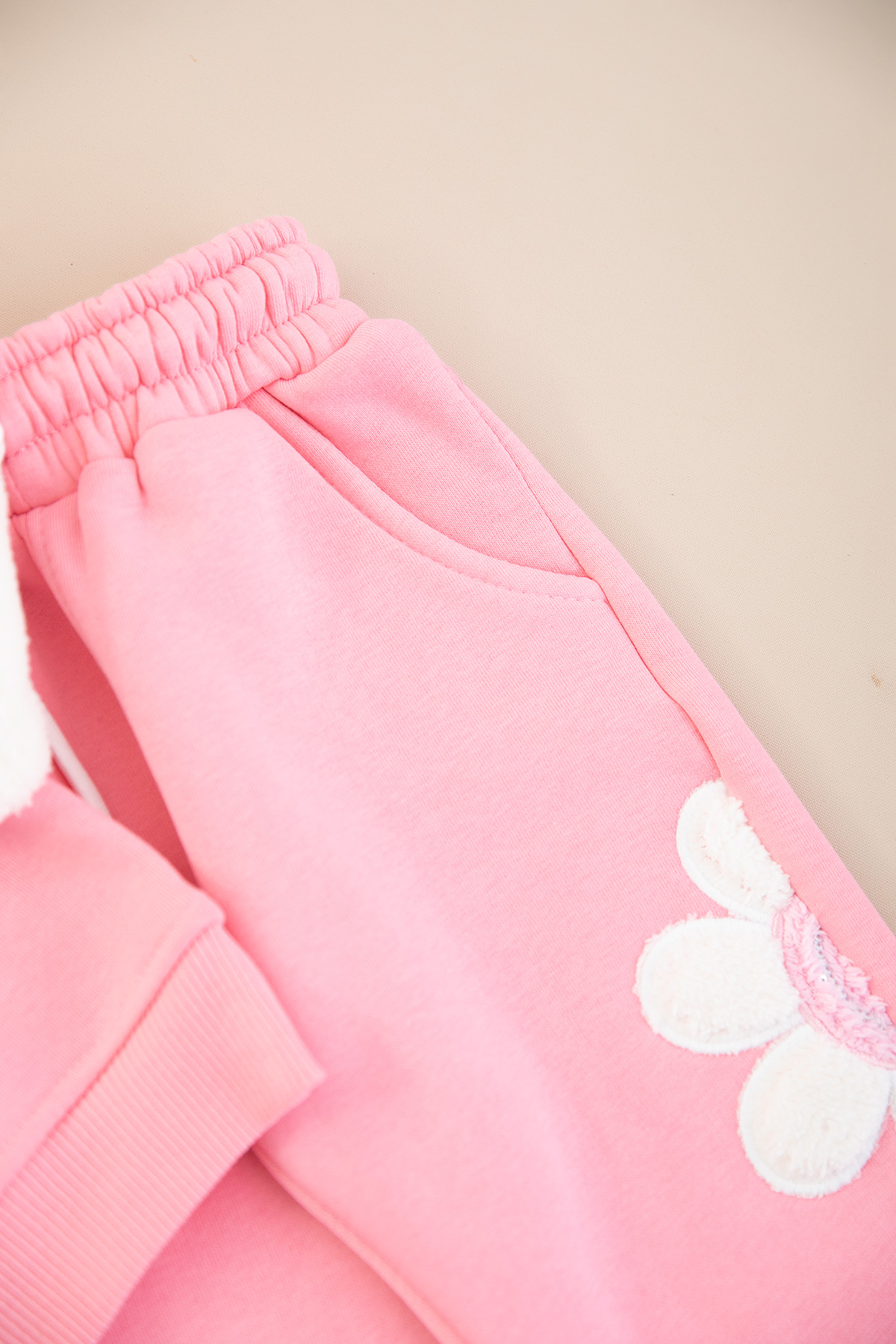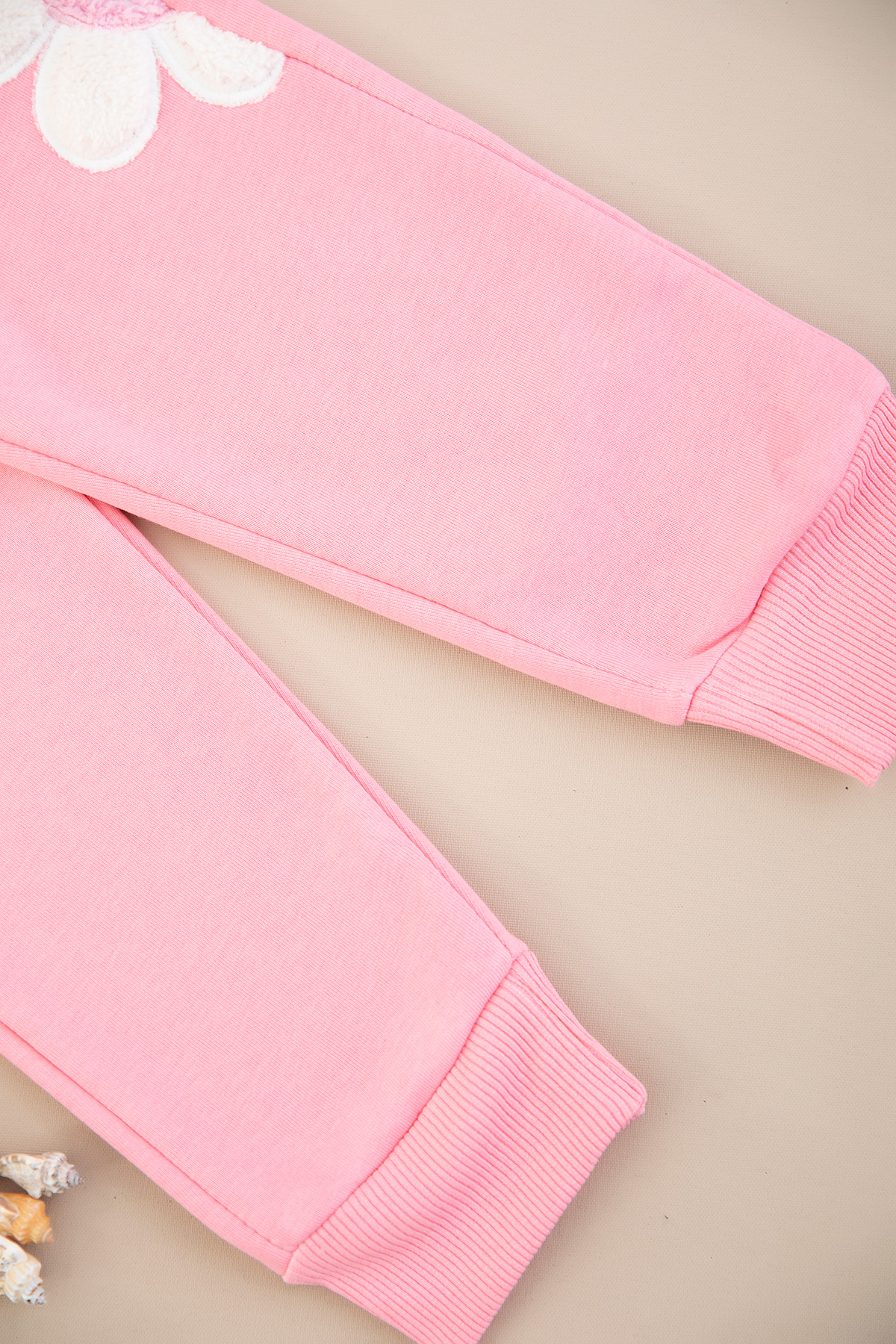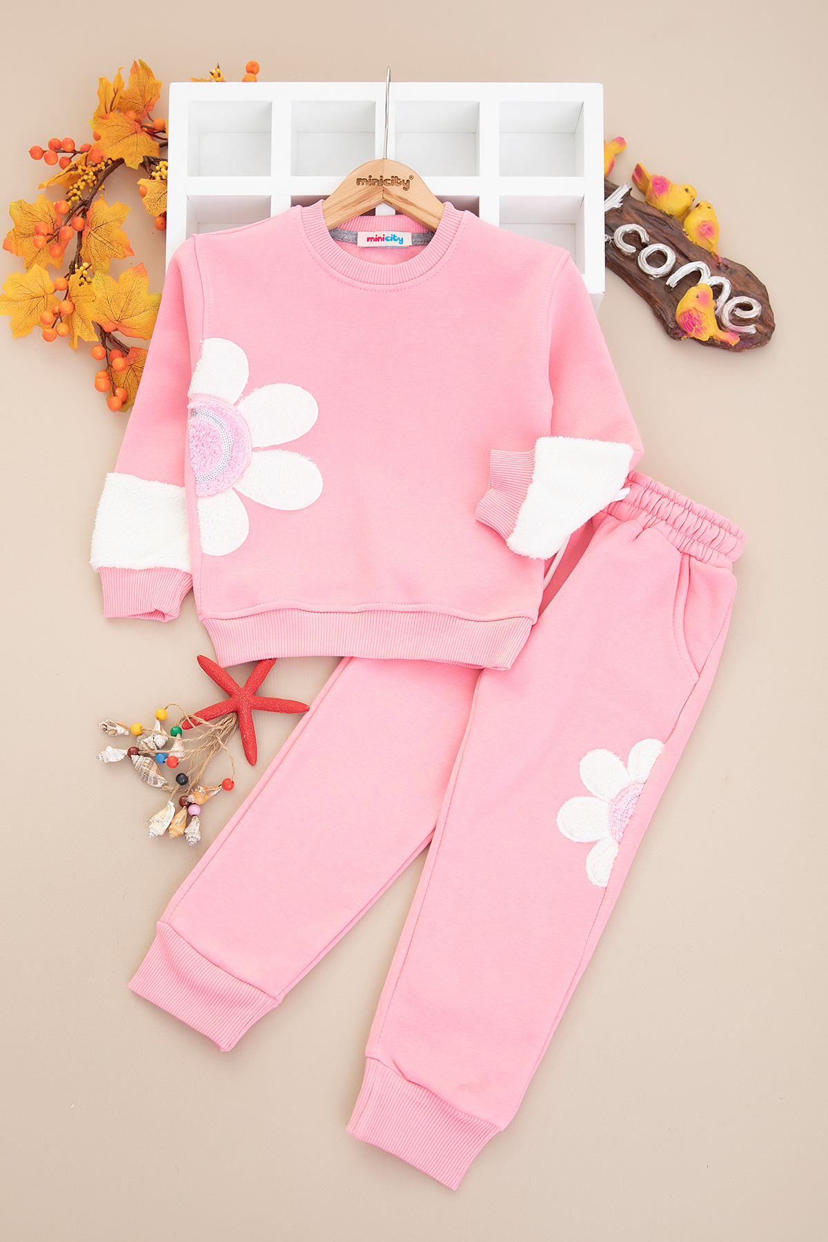 Kız Çocuk Peluş Çiçek Nakışlı Üçip Takım - 5059 (3-10 Yaş)