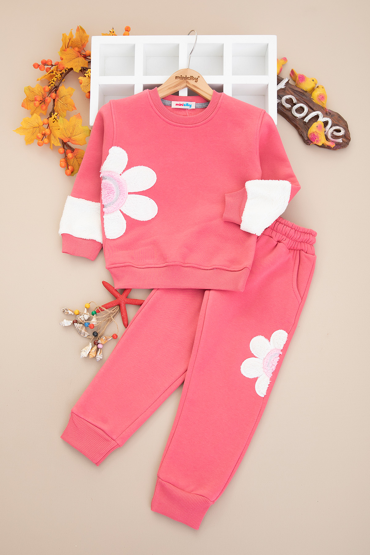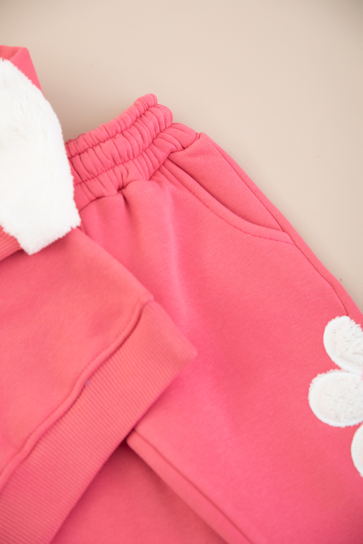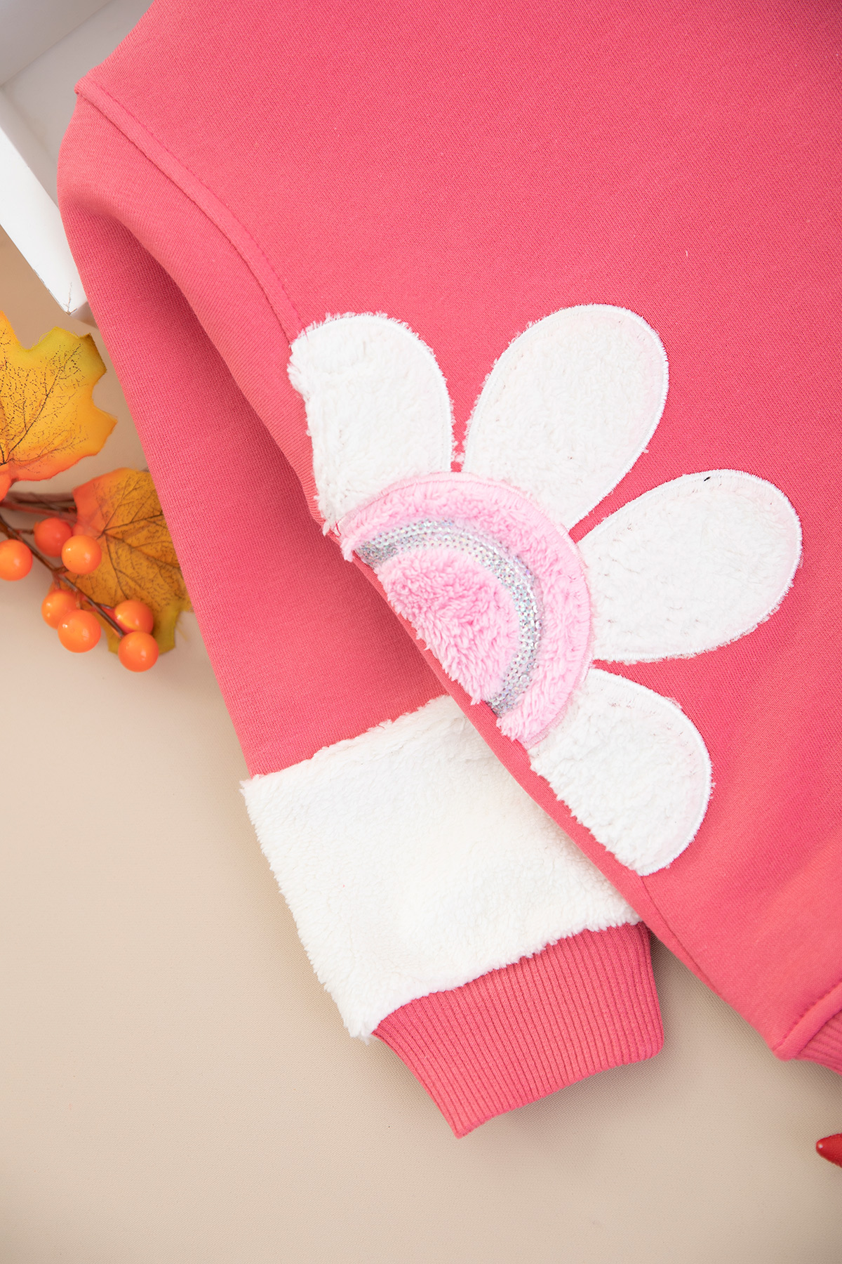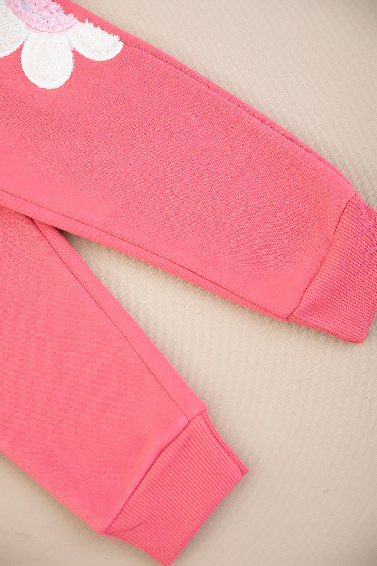 Kız Çocuk Peluş Çiçek Nakışlı Üçip Takım - 5059 (3-10 Yaş)