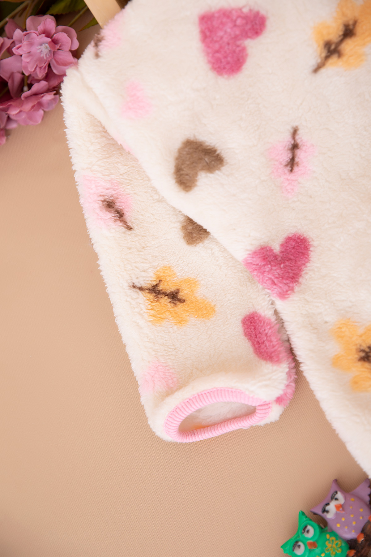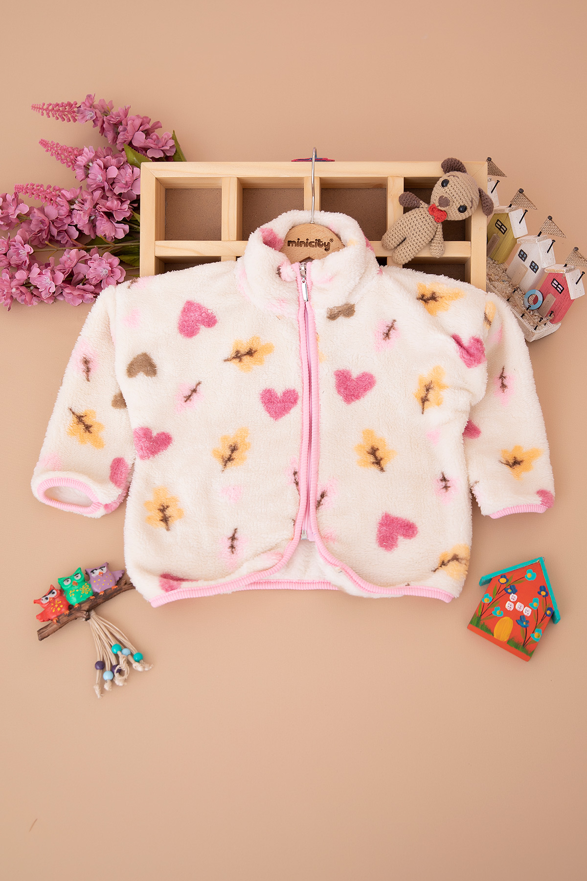 Kız Çocuk Peluş Kalp Fermuarlı Hırka - 13565 (3-7 Yaş )
