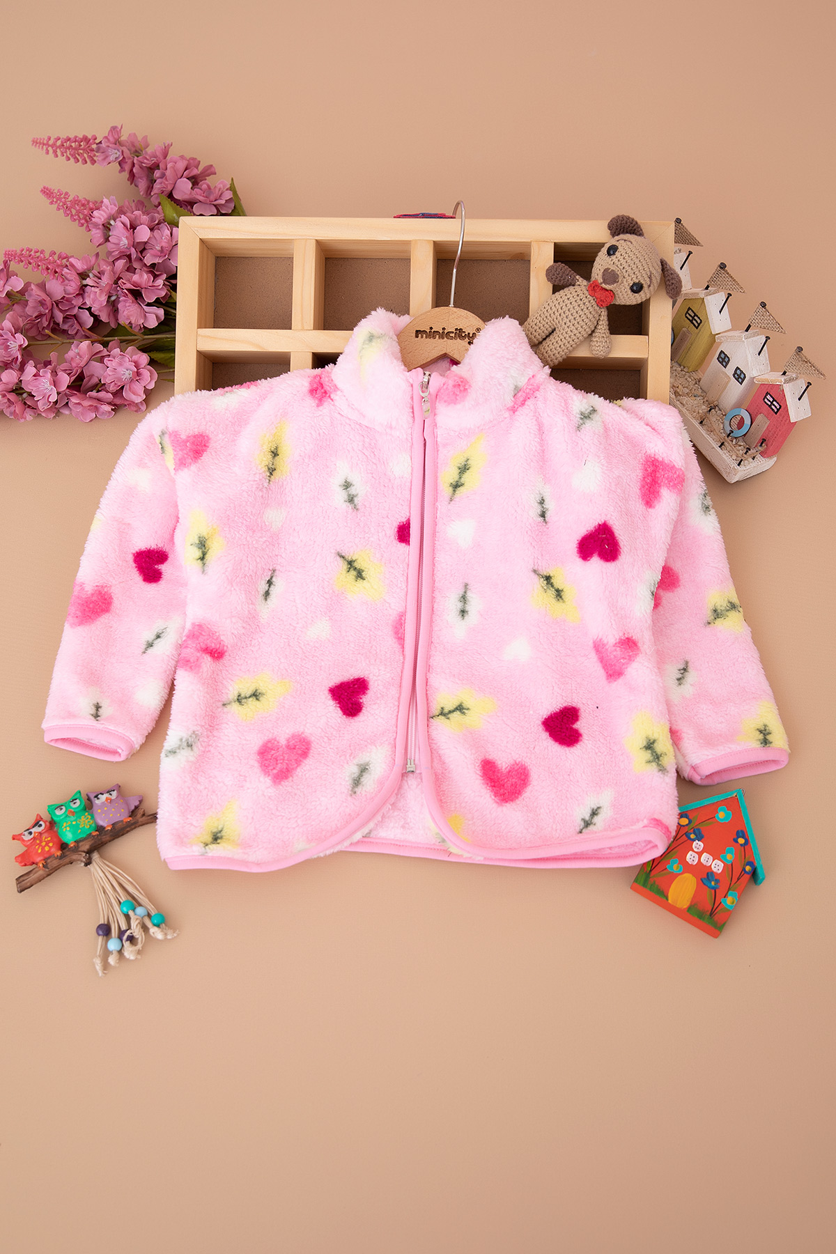 Kız Çocuk Peluş Kalp Fermuarlı Hırka - 13565 (3-7 Yaş )