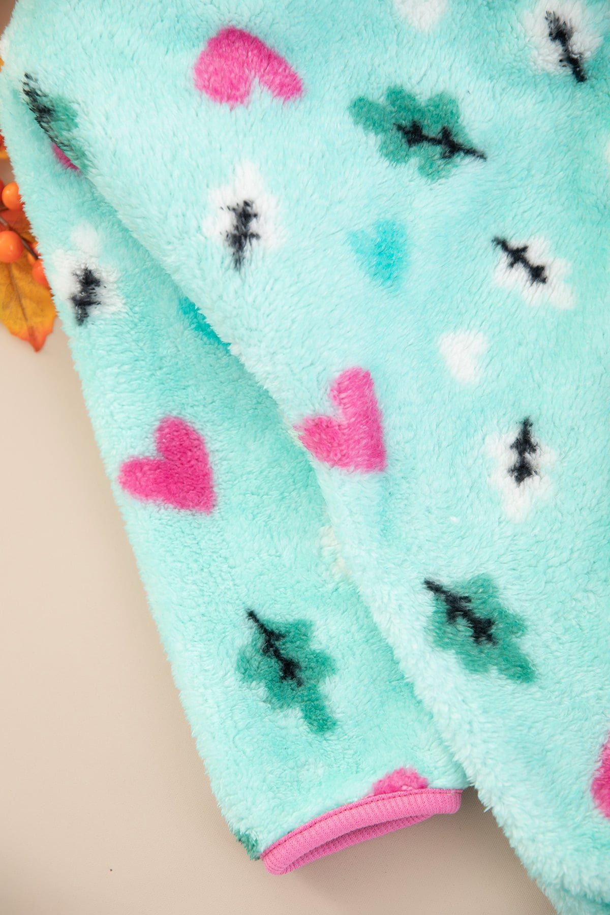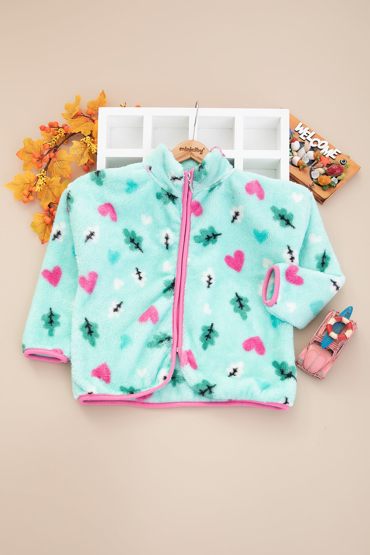Kız Çocuk Peluş Kalp Fermuarlı Hırka - 13566 (8-12 Yaş)