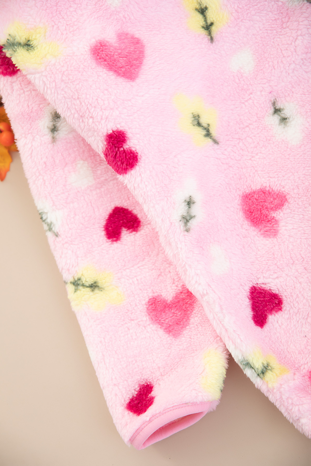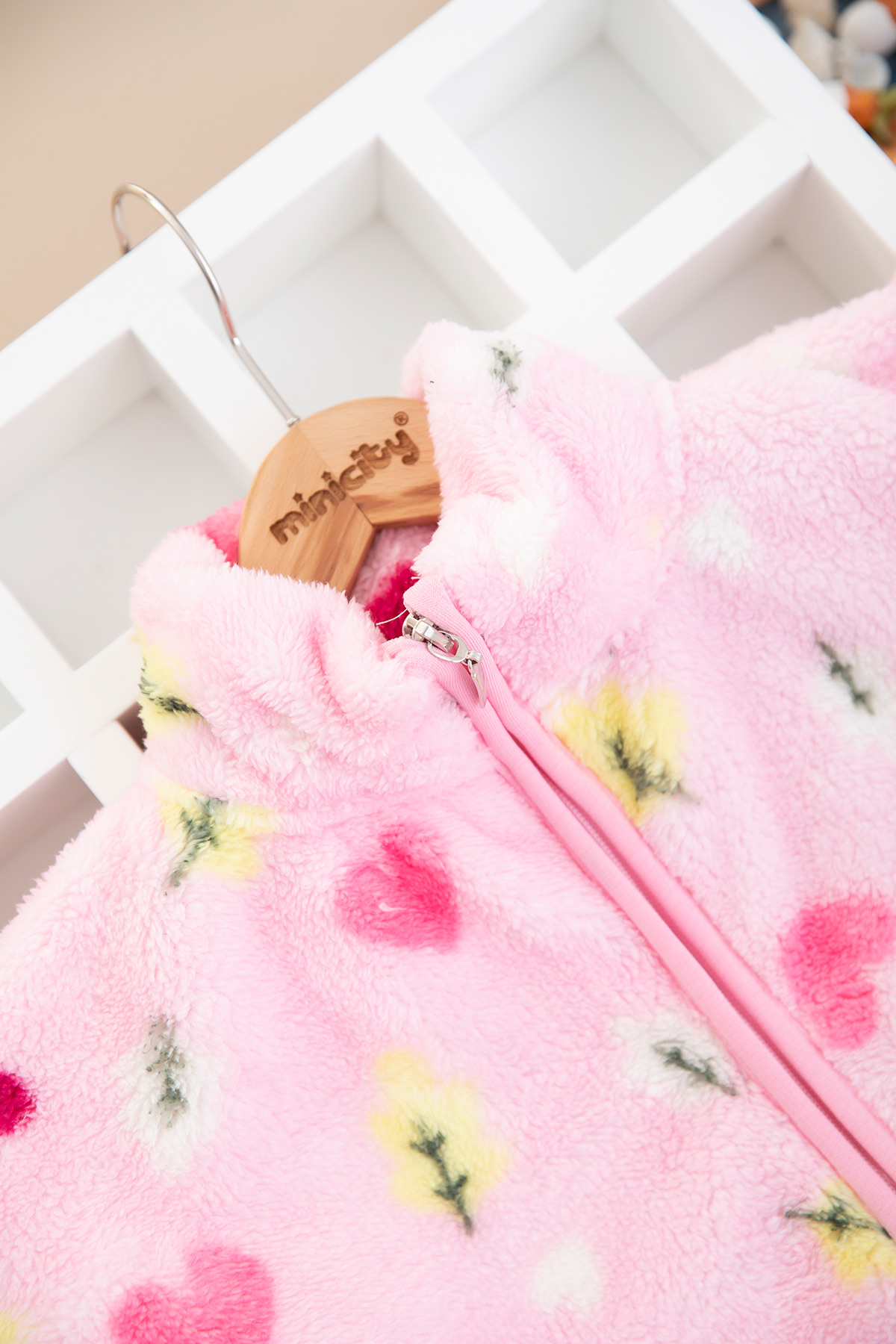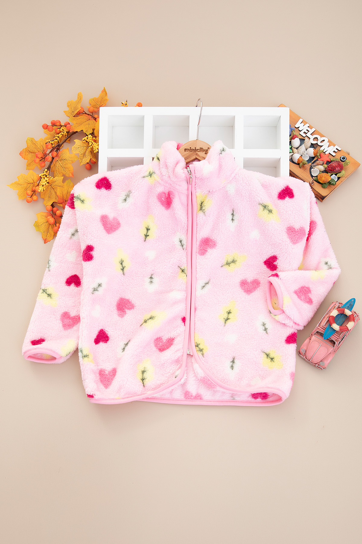 Kız Çocuk Peluş Kalp Fermuarlı Hırka - 13566 (8-12 Yaş)