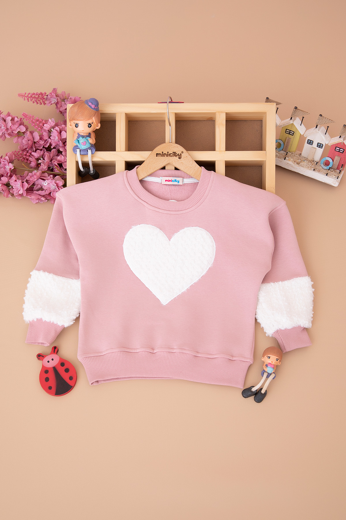 Kız Çocuk Peluş Kalpli Üçip Sweat - 4110 (3-7 Yaş)