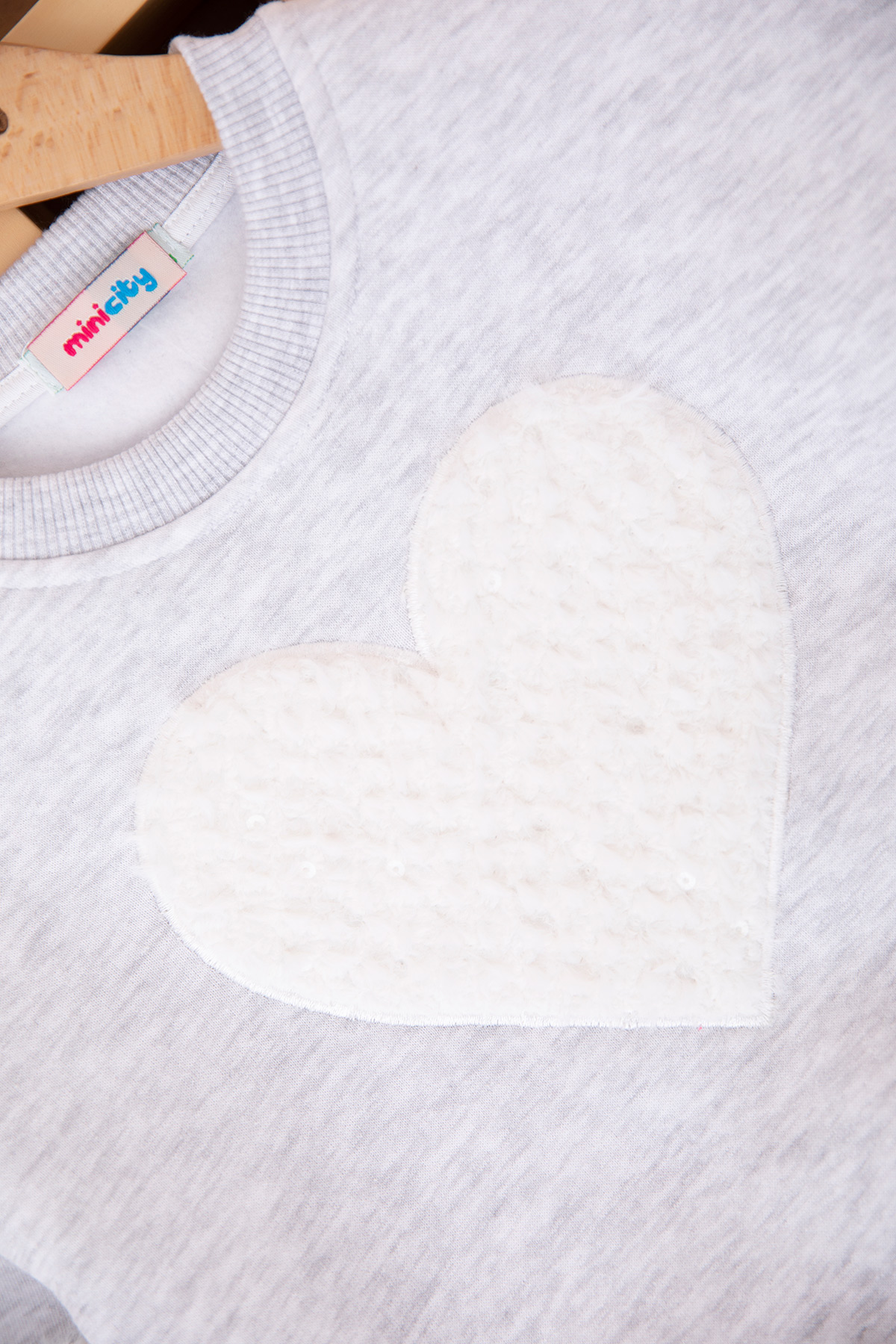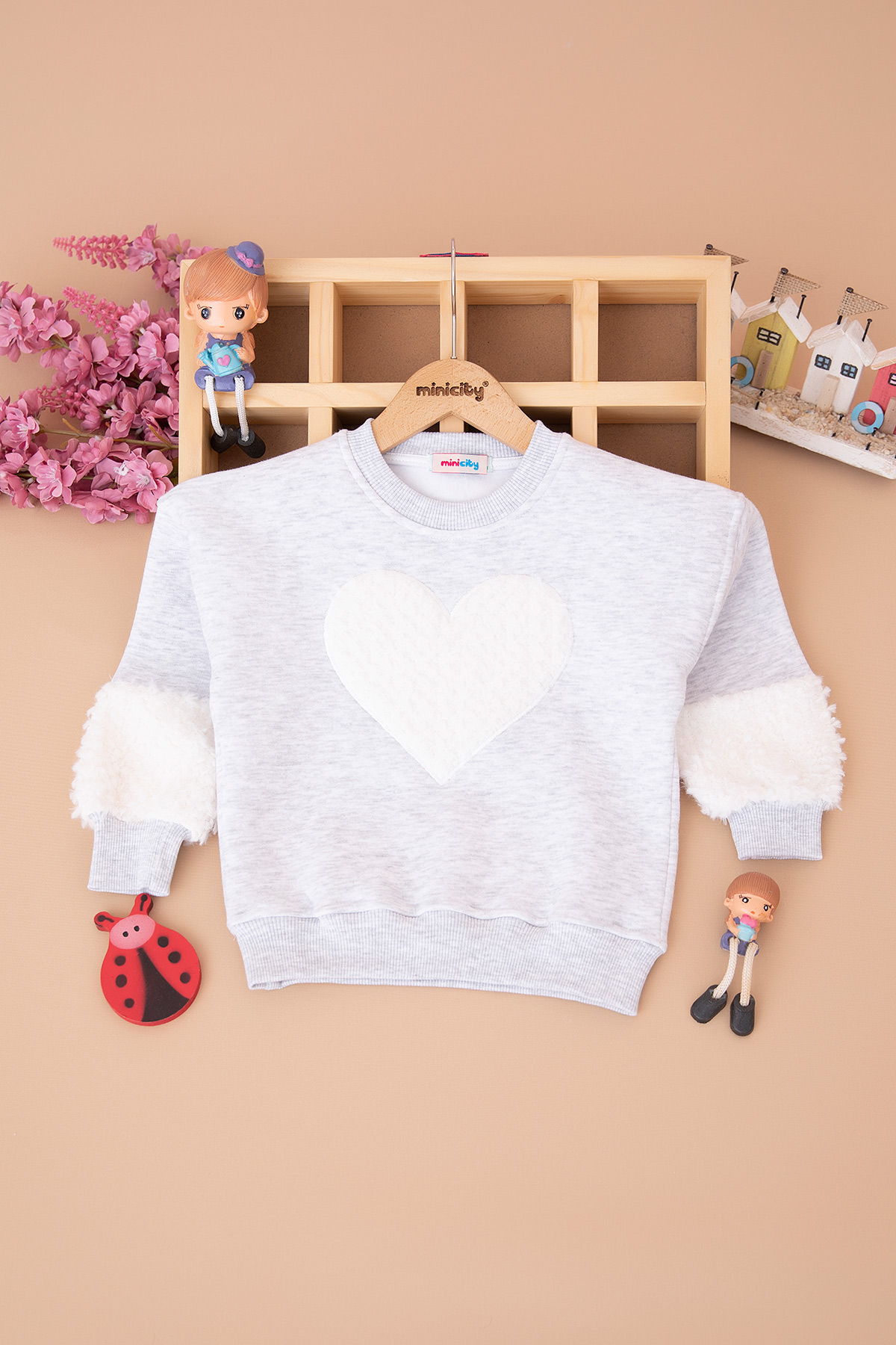 Kız Çocuk Peluş Kalpli Üçip Sweat - 4110 (3-7 Yaş)