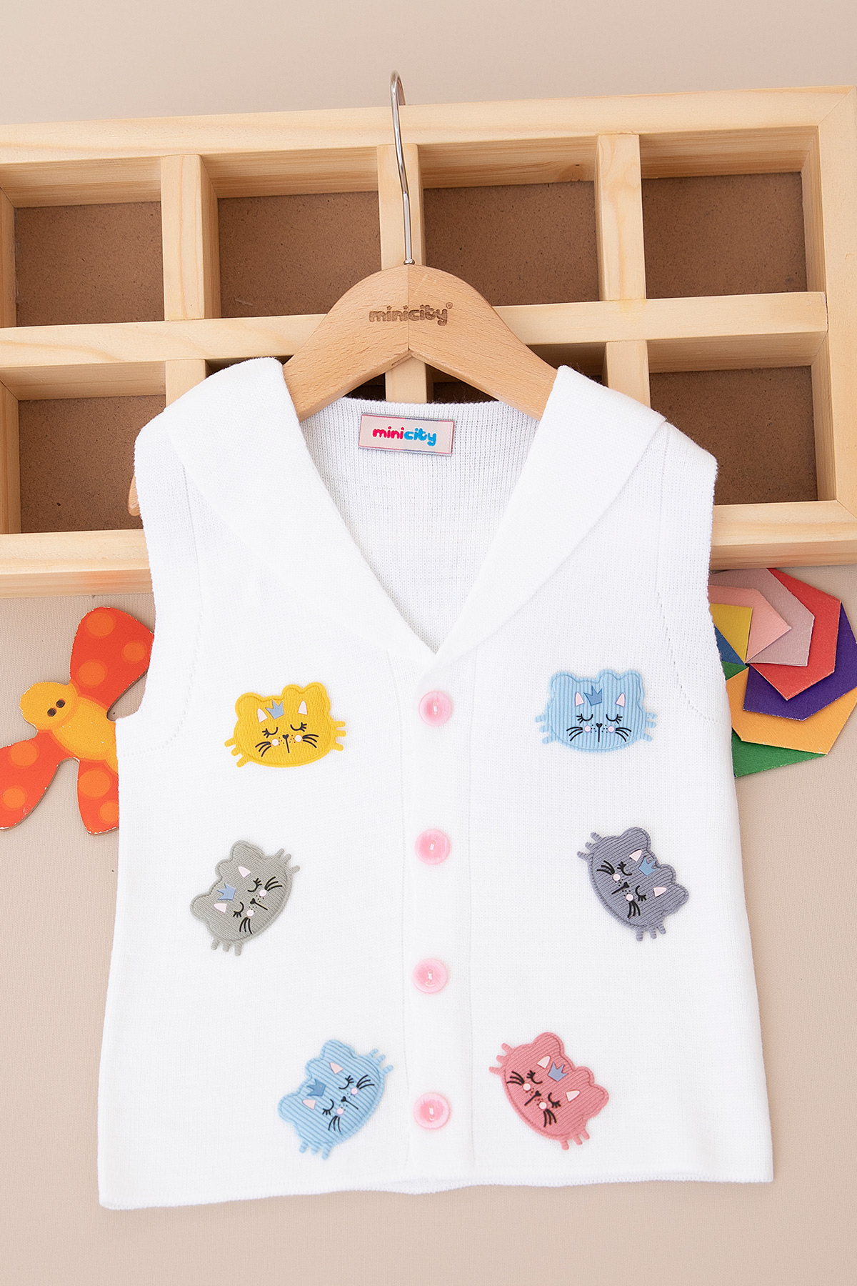 Kız Çocuk Peluş Kedili Triko Yelek - 506 (1-5 Yaş)