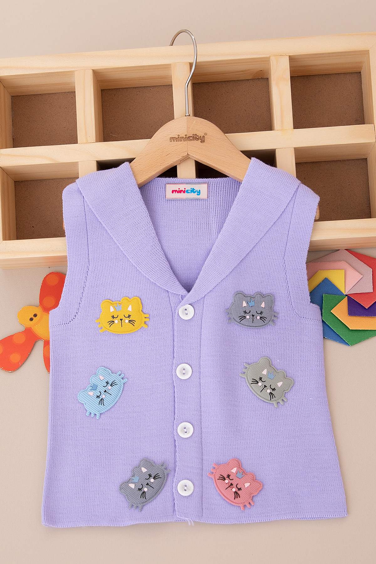 Kız Çocuk Peluş Kedili Triko Yelek - 506 (1-5 Yaş)