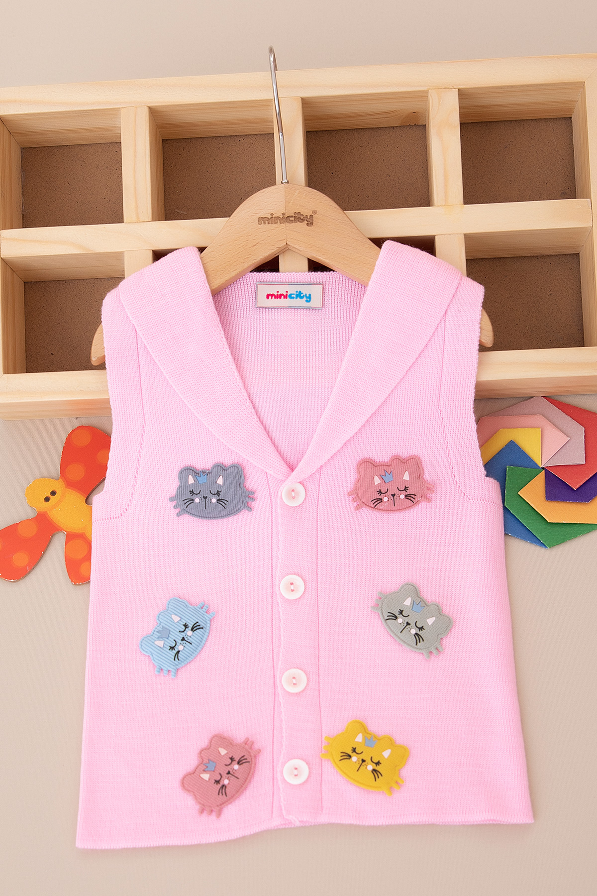 Kız Çocuk Peluş Kedili Triko Yelek - 506 (1-5 Yaş)