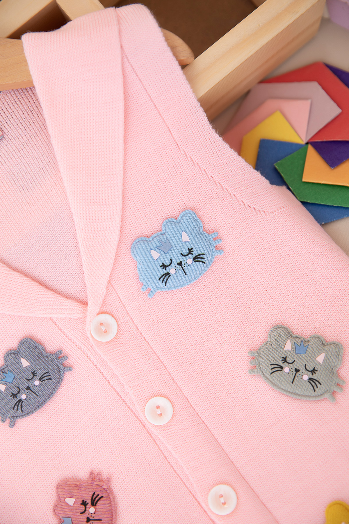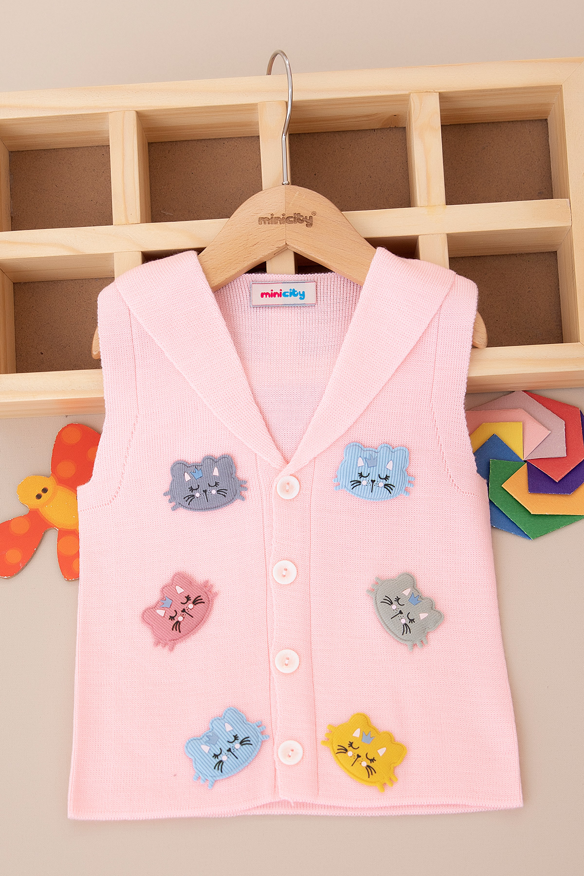 Kız Çocuk Peluş Kedili Triko Yelek - 506 (1-5 Yaş)