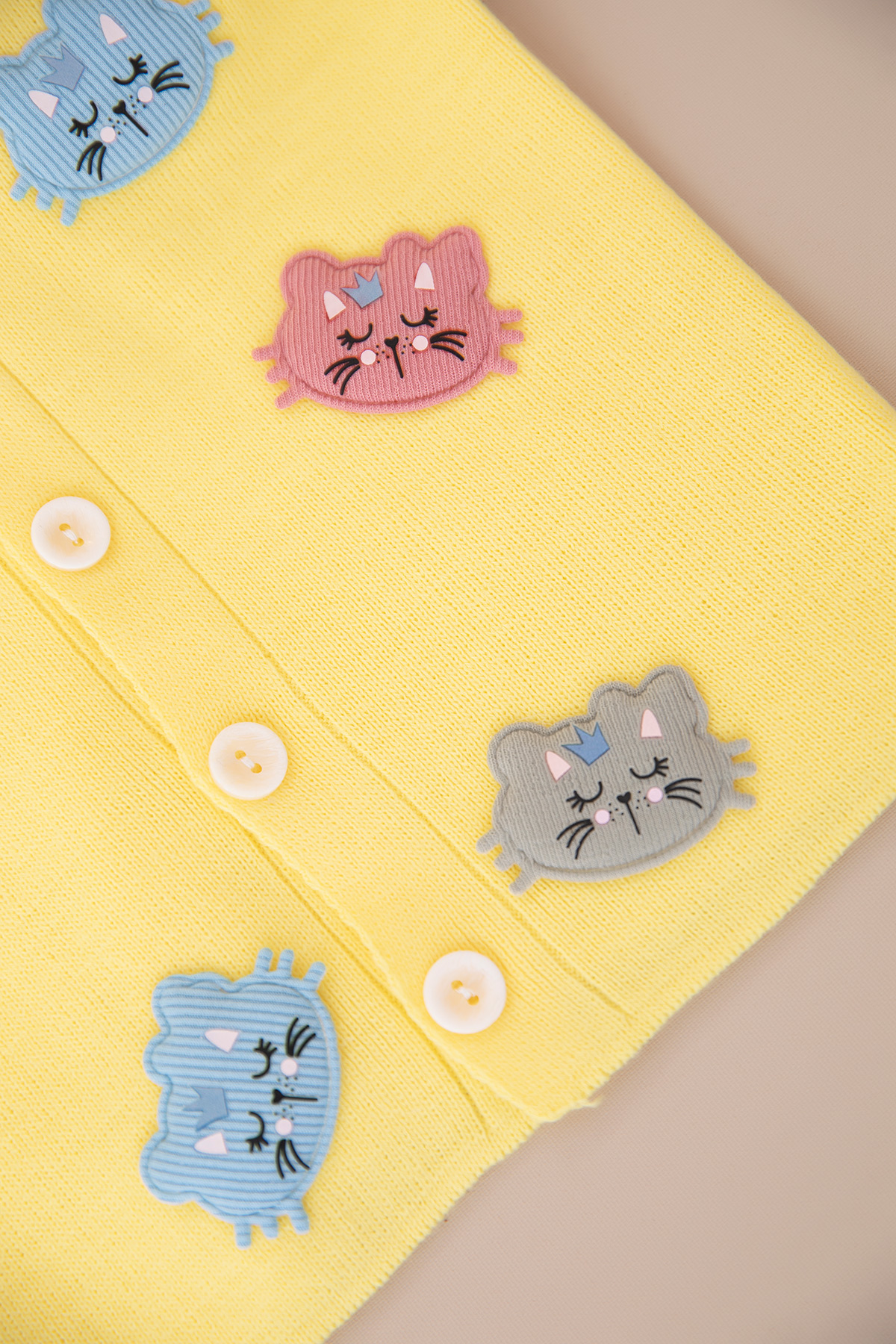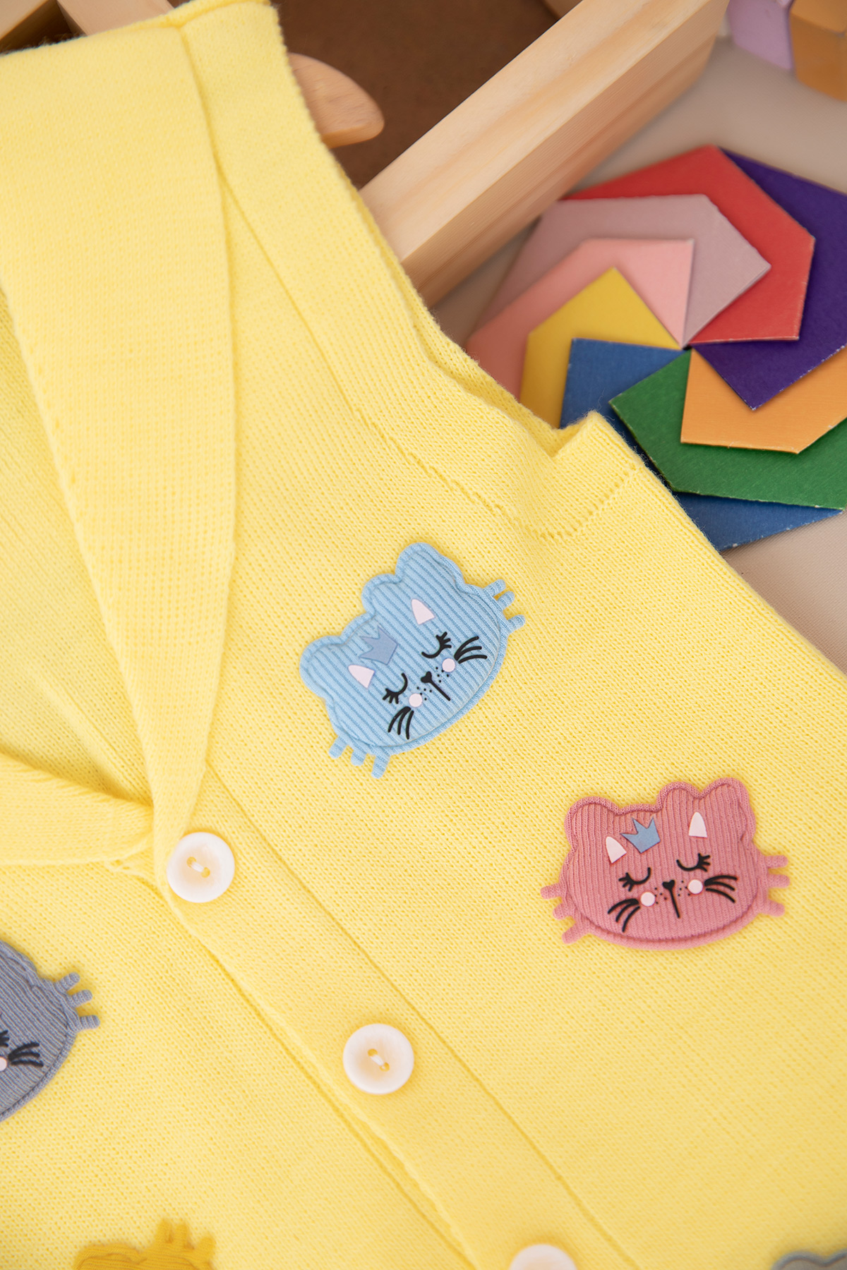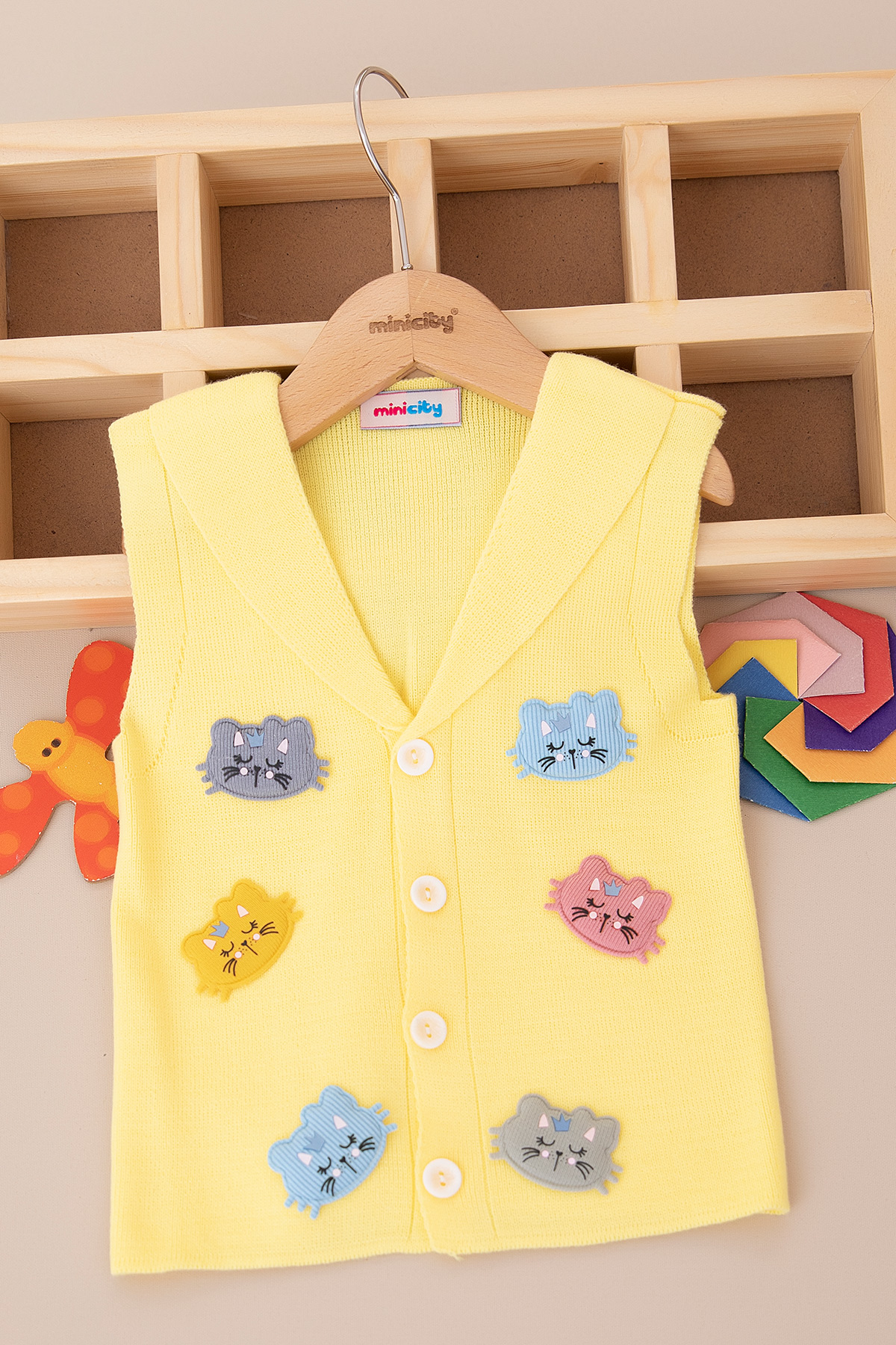 Kız Çocuk Peluş Kedili Triko Yelek - 506 (1-5 Yaş)