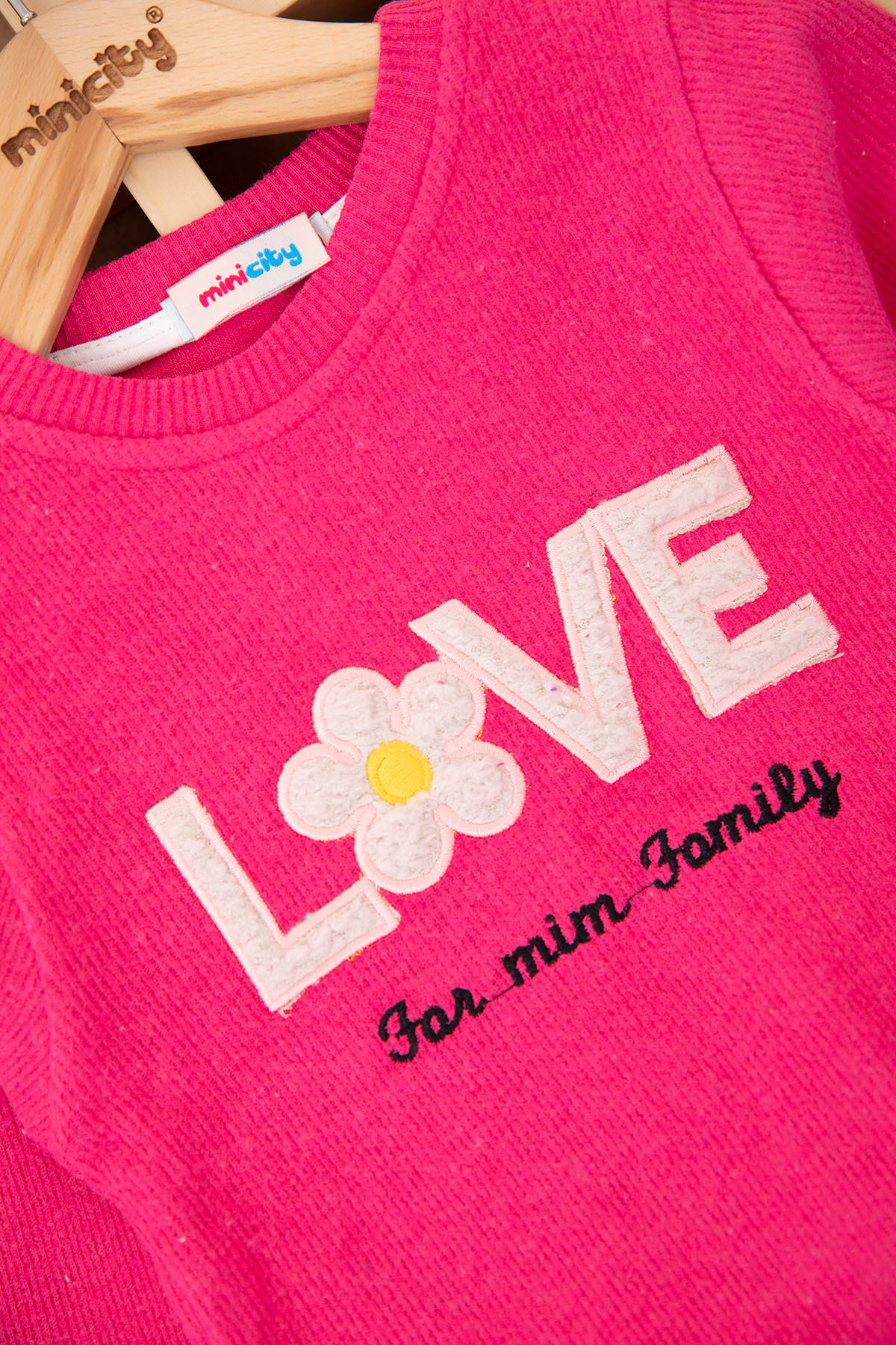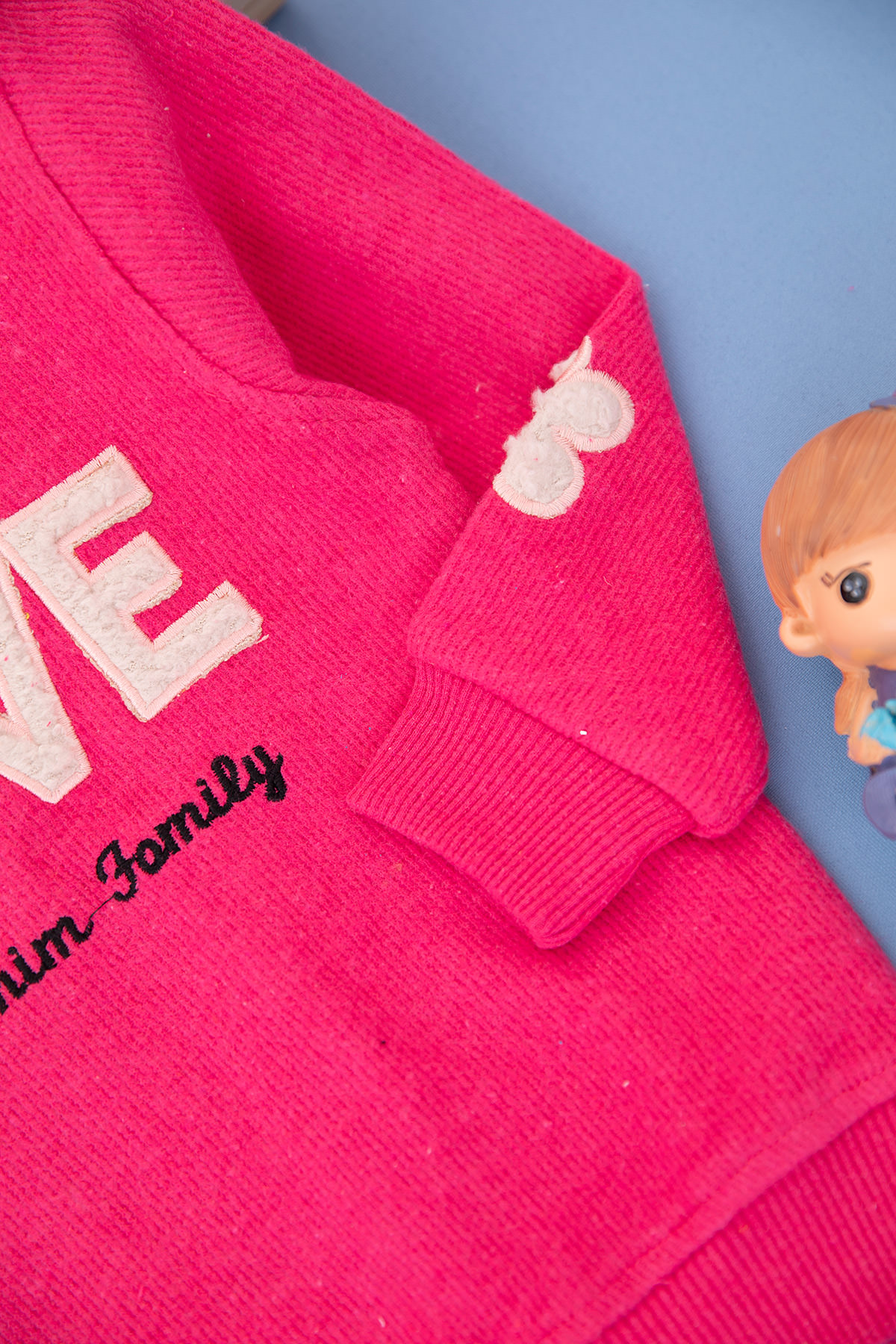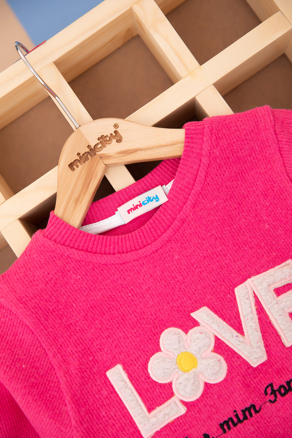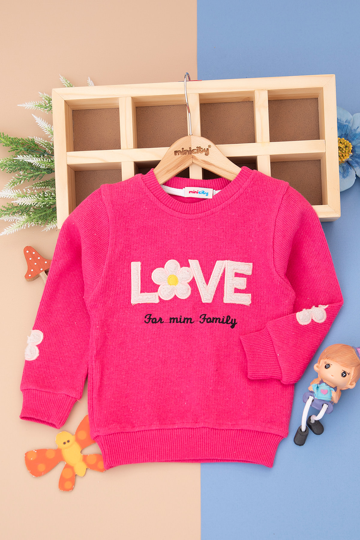 Kız Çocuk Peluş Love Flowers Nakışlı Sweat - 1508 (1-4 Yaş)