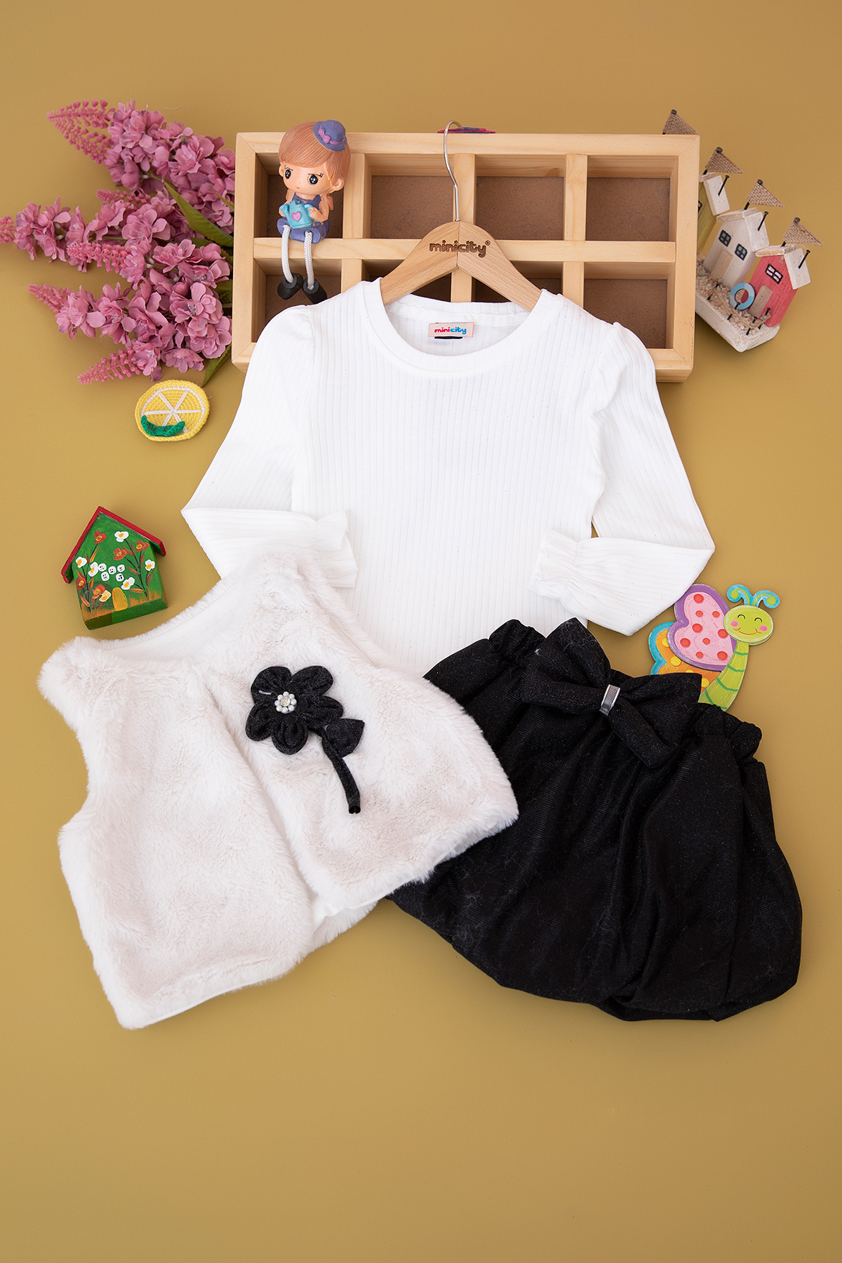 Kız Çocuk Peluş Yelekli Etekli Takım - 2068 (4-10 Yaş)