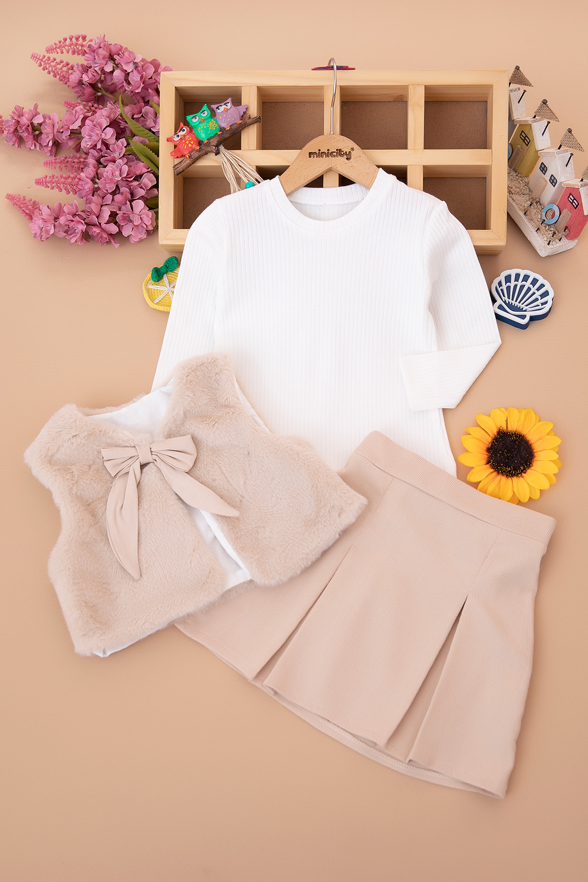 Kız Çocuk Peluş Yelekli Etekli Takım - 5139 (2-5 Yaş)