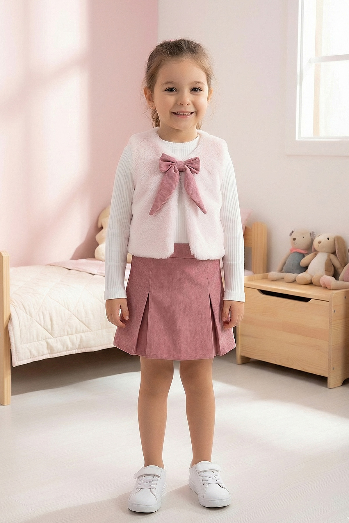 Kız Çocuk Peluş Yelekli Etekli Takım - 5139 (2-5 Yaş)