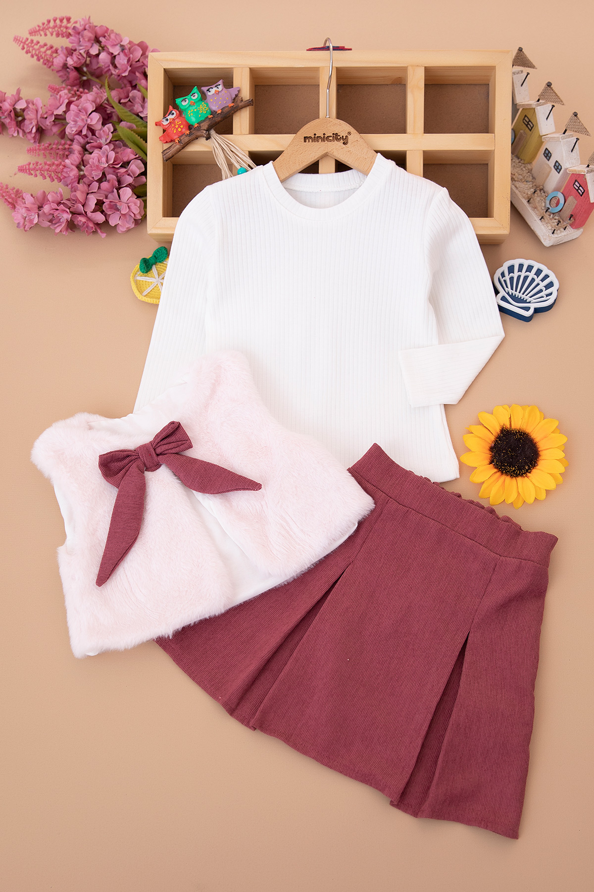 Kız Çocuk Peluş Yelekli Etekli Takım - 5139 (2-5 Yaş)