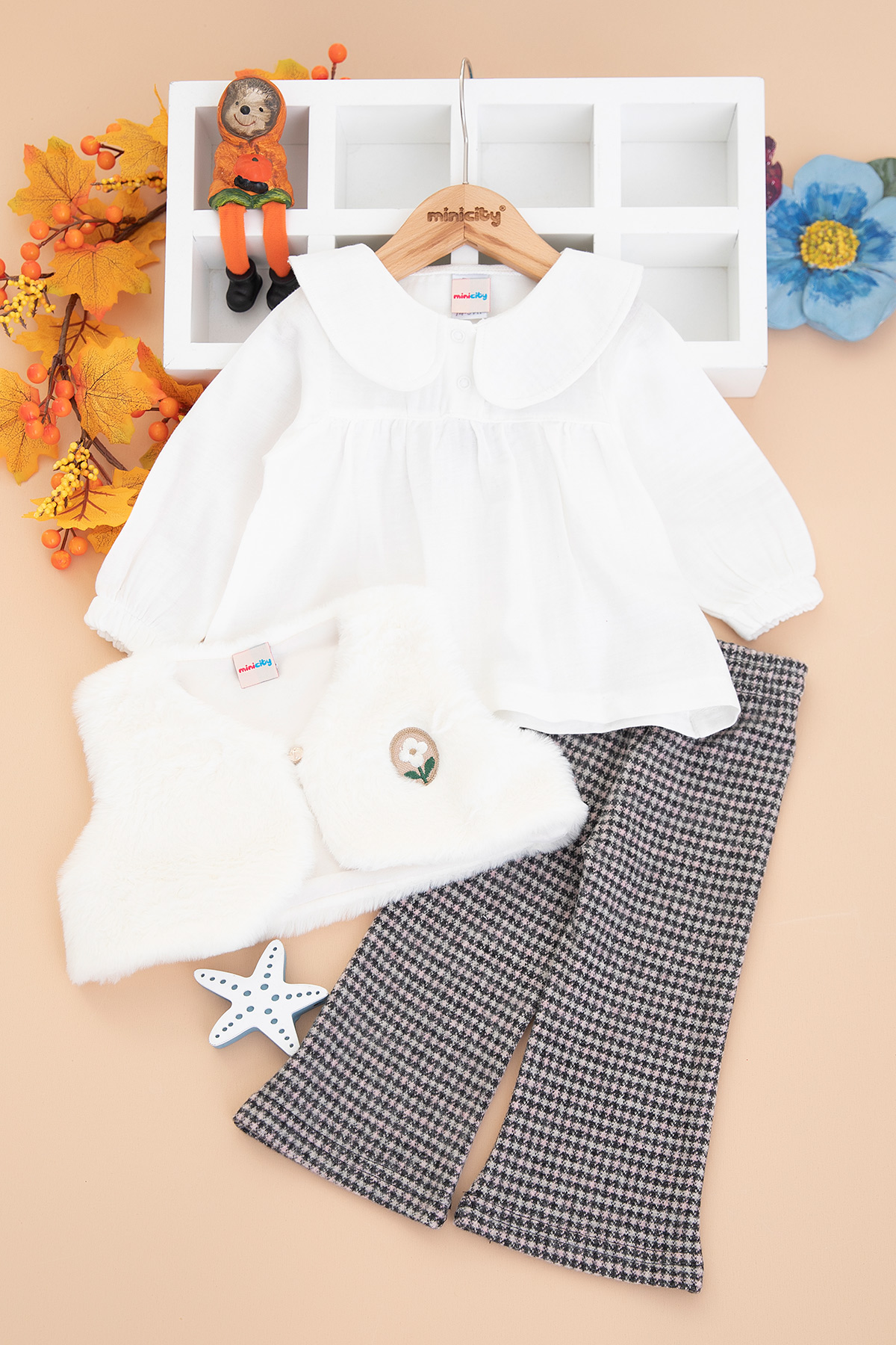 Kız Çocuk Peluş Yelekli Üçlü Takım - 26088 (3-6 Yaş)
